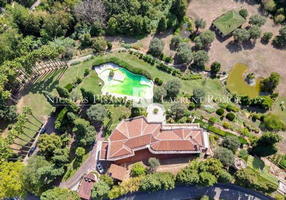 Im Herzen des Anwesens befindet sich ein ca. 800 m² großes Haupthaus im palladianischen Stil, das sich durch seine majestätischen Volumen und seine elegante Symmetrie auszeichnet. Es erstreckt sich über mehrere Ebenen und bietet große Empfänge mit Zugang zum Park, luxuriöse Suiten, einen Wellnessbereich sowie eine Umgebung, die perfekt gestaltet ist, um Familie und Gäste in einer außergewöhnlichen Umgebung zu empfangen.