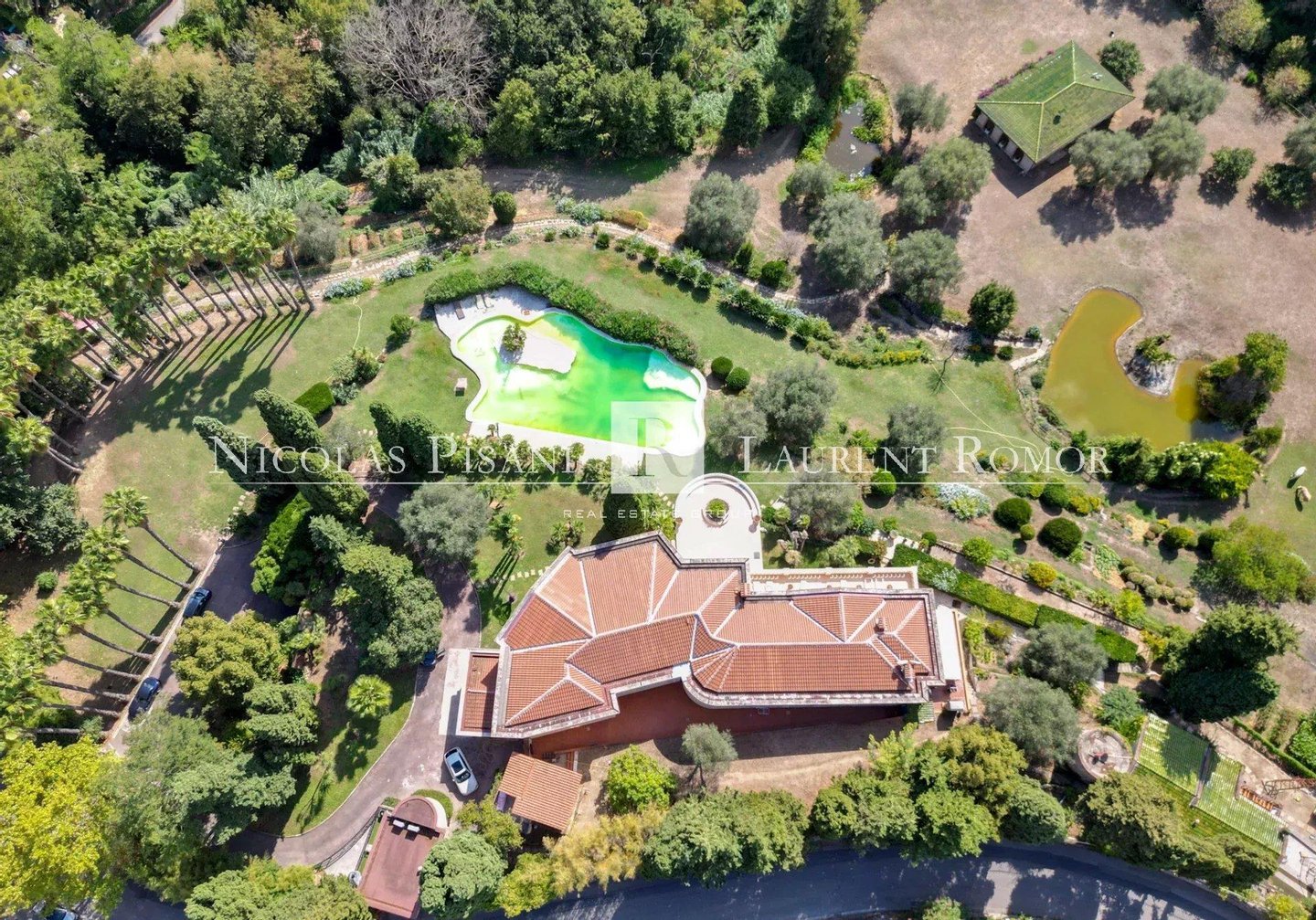 Das Anwesen wird durch ein unabhängiges Nebenhaus, ideal für Personal oder Gäste, sowie einen künstlich angelegten See bereichert.