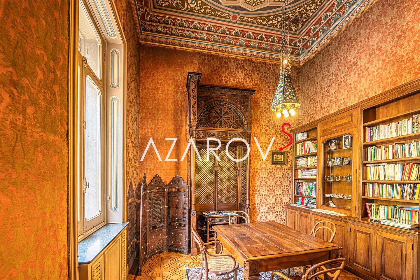 Das dreigeschossige Gebäude ist innen und außen perfekt erhalten und ein gelungenes Beispiel für die Verschmelzung von Klassizismus und Neorokoko. Die prestigeträchtige Residenz erstreckt sich über drei Etagen mit einer Gesamtfläche von 1150 Quadratmetern. Gekrönte Marmormarkisen auf den Balkonen, Gesimse mit Schnüren, geschnitzte Fenster in verschiedenen Formen und Größen, die mit Stuck und Kronen verziert sind, symbolisieren die symmetrische Fassade, die von den hellen Tönen dominiert wird, die typisch für die Residenzen der französischen Zeit dieser Jahre sind.