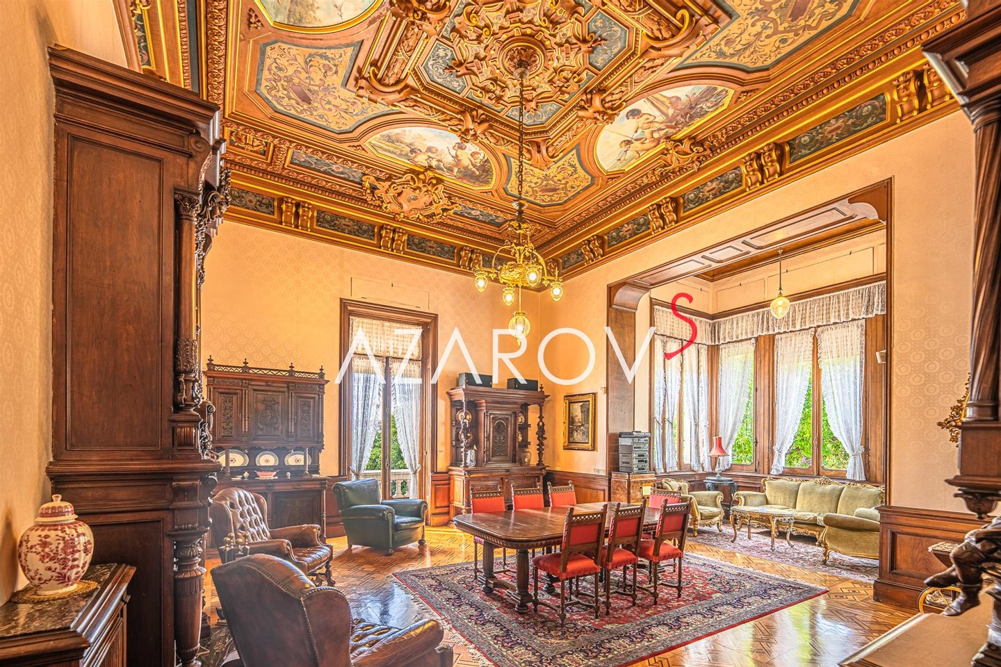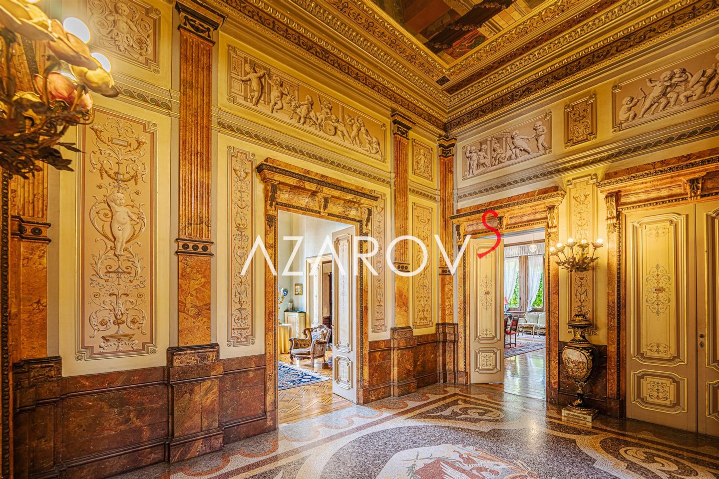 Die Inneneinrichtung jedes Zimmers dieses historischen Hauses wurde mit besonderer Aufmerksamkeit für alle Details vorgenommen, jedes Möbelstück fügt sich harmonisch in alle Räume ein. Originale Parkettböden, majestätische Marmortreppen, Kristalllüster, prächtige Spiegel, Intarsienmöbel, Stuckverzierungen und mit Fresken bemalte Kassettendecken machen Sie sprachlos, die zweifelsohne als Traumvilla bezeichnet werden kann. Executive-Zimmer, acht luxuriöse Schlafzimmer und neun Badezimmer bilden diese prächtige Residenz. Draußen umgibt ein luxuriöser, 5.000 Quadratmeter großer, mit Skulpturen geschmückter Park das Anwesen. Der Park ist komplett mit einem grünen Zaun eingezäunt, so dass Sie sich in einer echten privaten Oase entspannen können, auf der Terrasse sitzen und das Meer blicken.