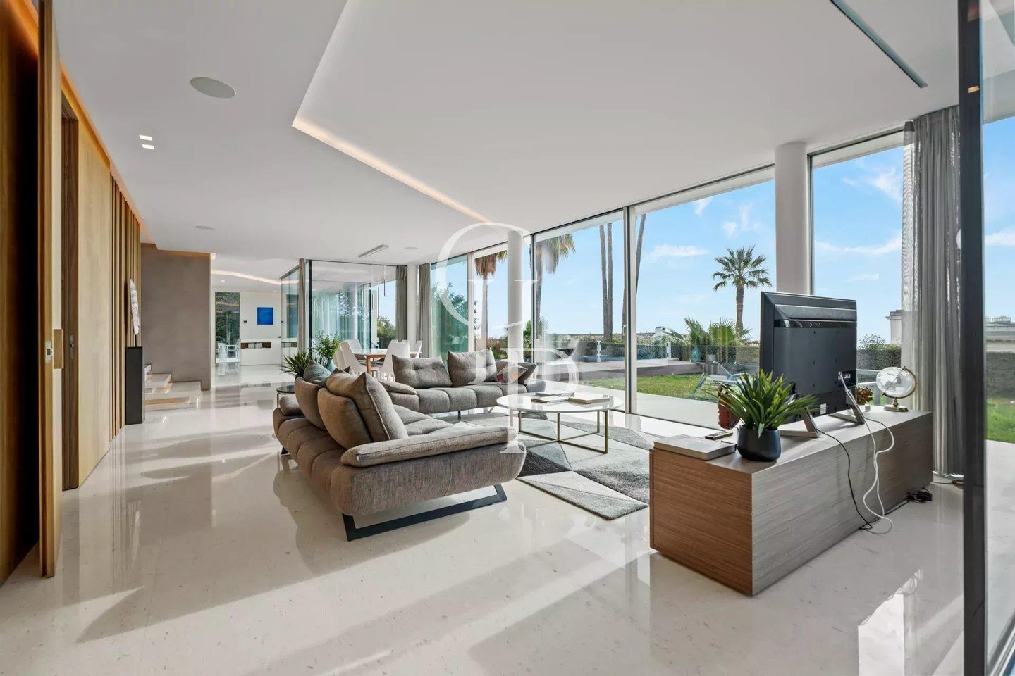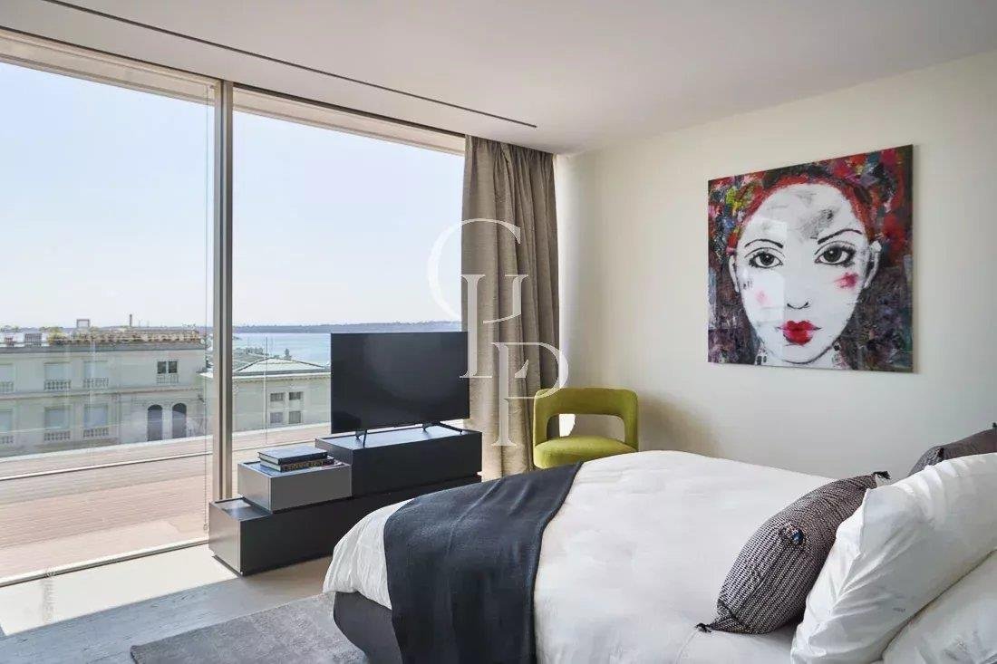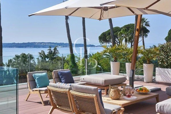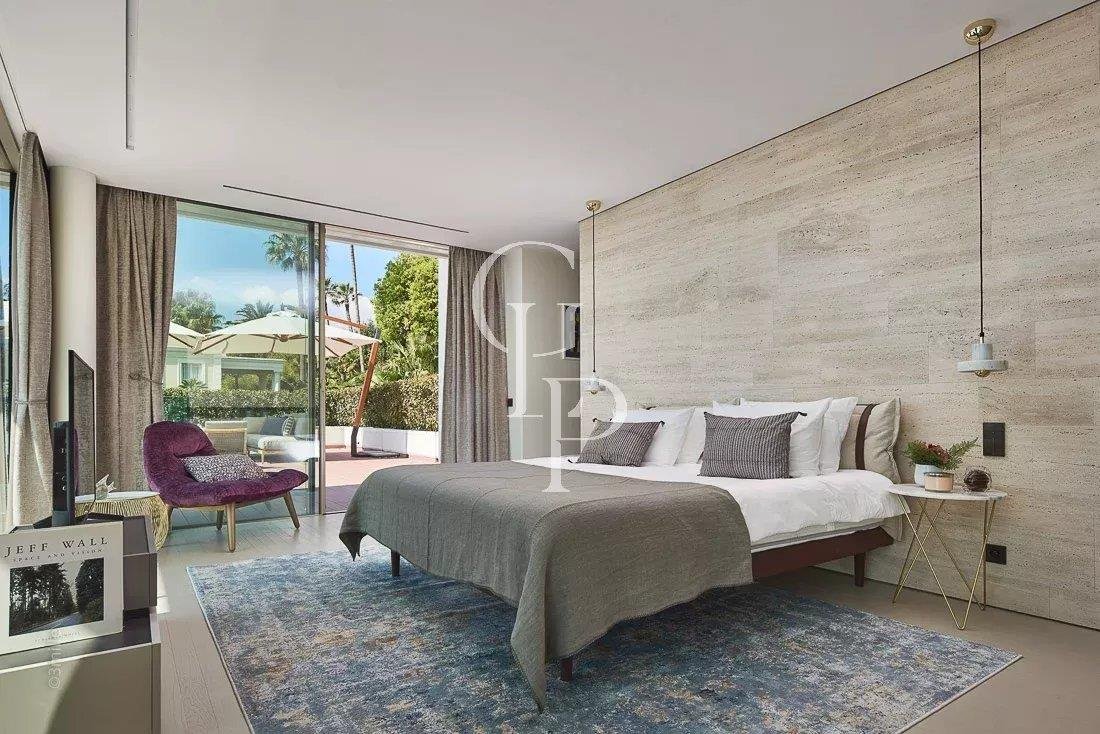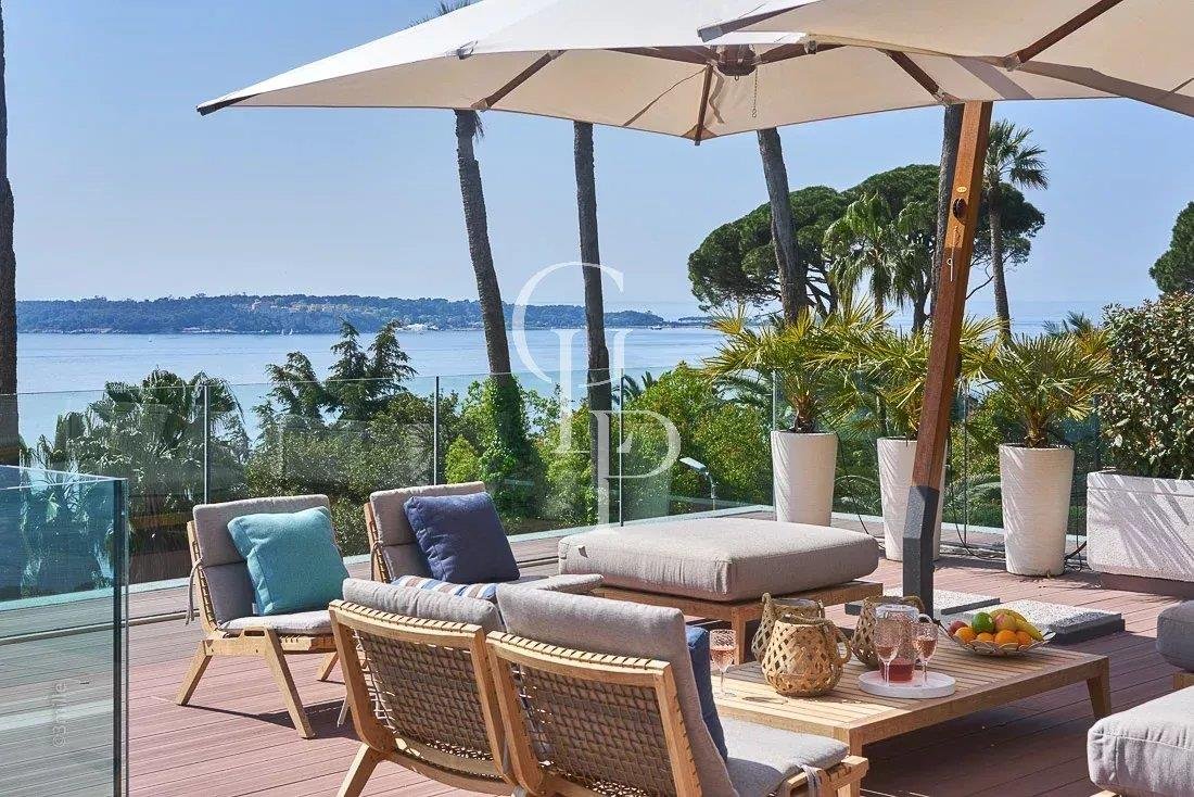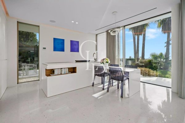 Villa Iloana, eine moderne Oase im Herzen eines sicheren Privatanwesens in Cannes, entpuppt sich als außergewöhnliche Residenz mit Blick auf das Meer und die Lérins-Inseln.
