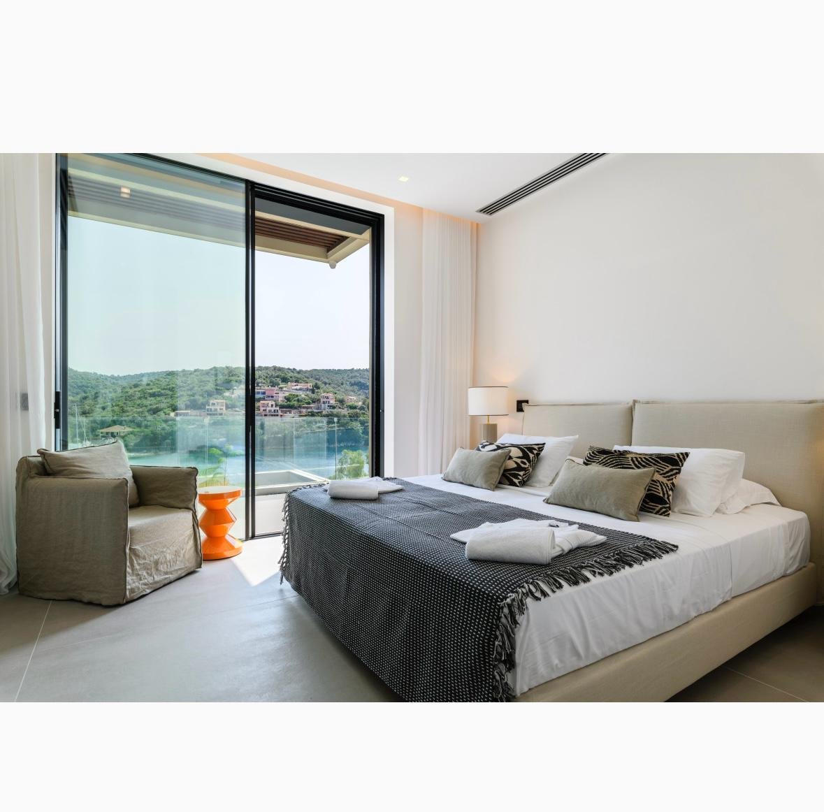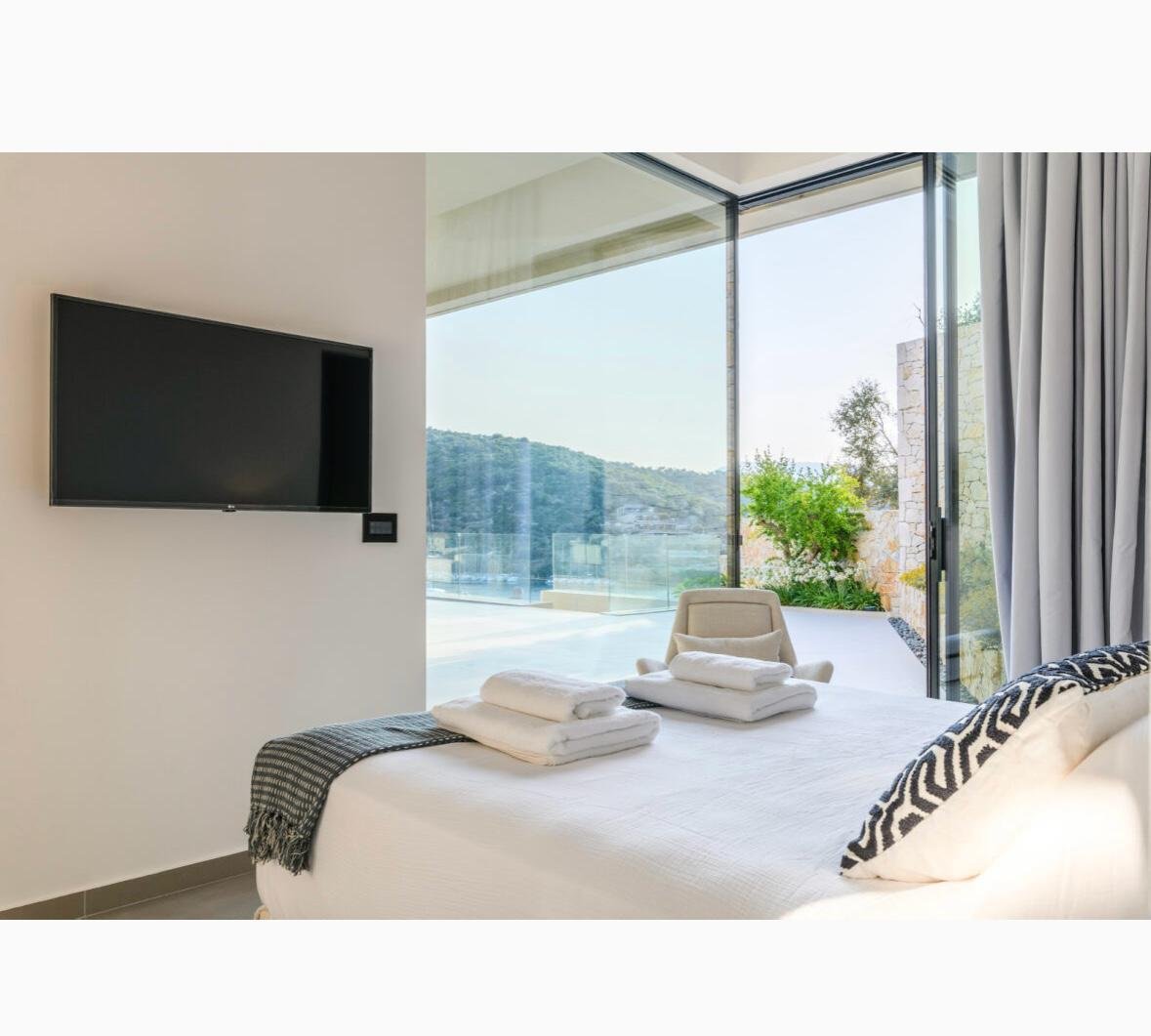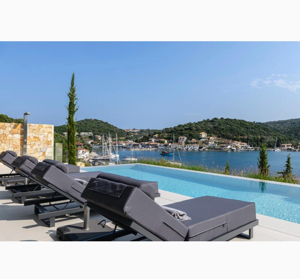 Die Villa befindet sich in einer erstaunlichen Lage mit natürlicher Schönheit, ist luxuriös und hat einen spektakulären Blick auf Vathy und unbegrenzten Meerblick.