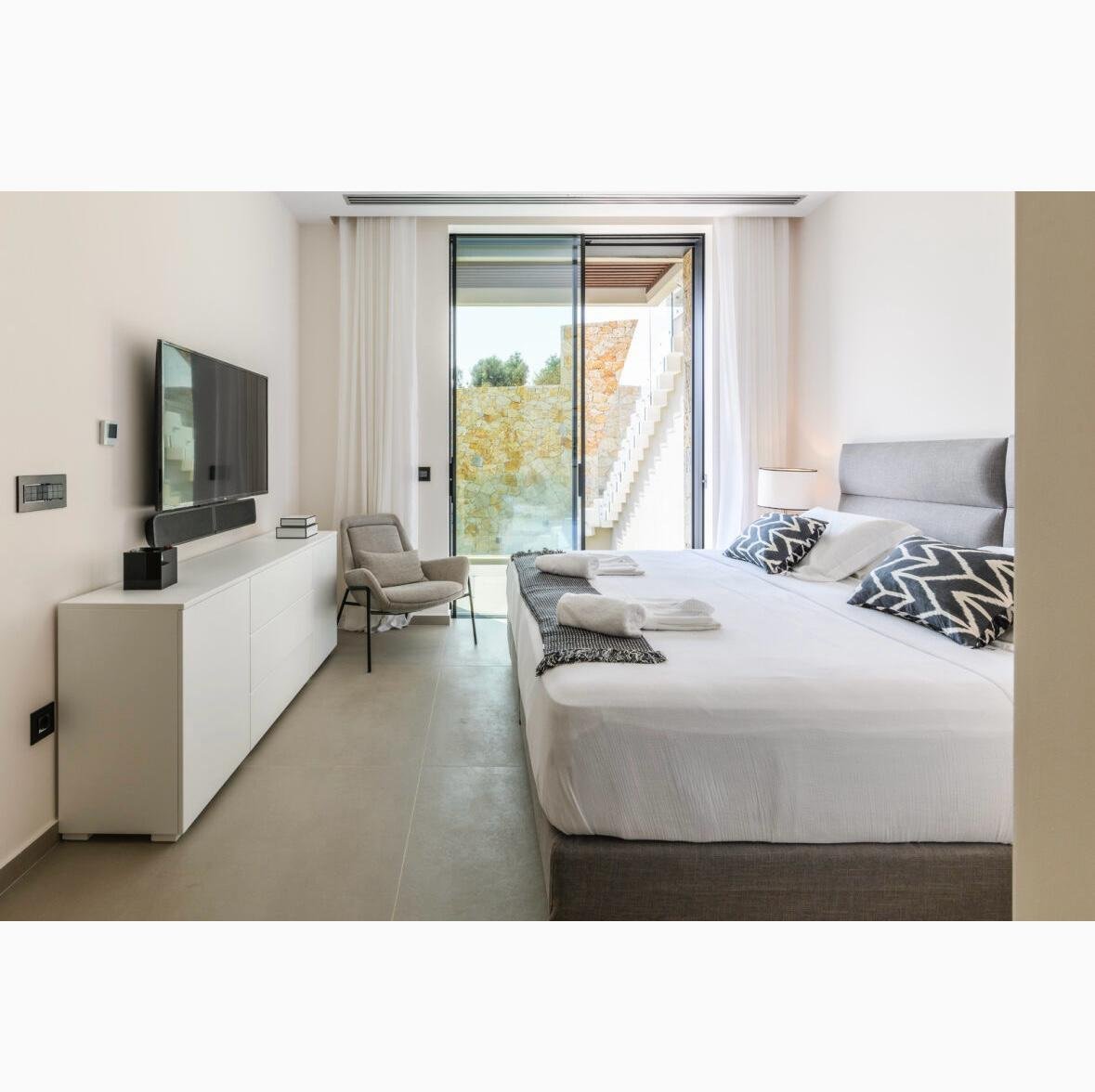 Die Villa erstreckt sich über 3 Ebenen, besteht aus 9 Schlafzimmern, davon 7 Hauptschlafzimmer, 2 Küchen, Wohnzimmer, 7 Bädern und verfügt über zusätzliche Bereiche wie Fitnessraum, Spa-Raum, Spielzimmer, Swimmingpool und Whirlpool.