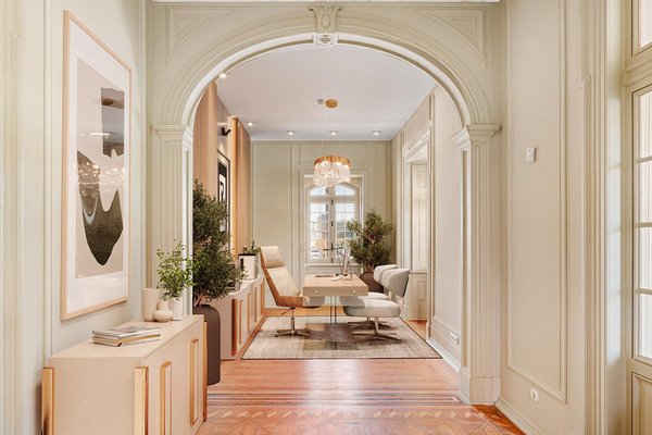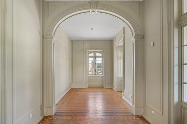 Der Palast besteht aus vier Etagen, die mit einem Aufzug erreichbar sind, das Erdgeschoss verfügt über soziale Bereiche, die sich auf fünf Wohnzimmer, ein Schlafzimmer und ein Badezimmer verteilen. Diese Etage verfügt auch über eine große offene Terrasse von etwa hundert Quadratmetern mit einer klassischen Kolonnade mit Blick auf die Bucht von Cascais, perfekt, um die Aussicht zu genießen. Der erste Stock verfügt über sechs Schlafzimmer, drei Wohnzimmer und drei Badezimmer. Die Master-Suite verfügt über einen großen Balkon mit Meerblick. Im obersten Stockwerk des Gebäudes mit 360º-Blick verfügt es über vier Schlafzimmer, ein komplettes Badezimmer, ein großes Wohnzimmer und Zugang zum Turm mit einem Wohnzimmer/Büro.