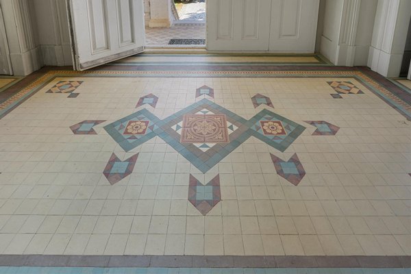 Im Erdgeschoss befinden sich zwei Wohnzimmer, eine Küche, ein Badezimmer und mehrere Technik- und Abstellräume.
