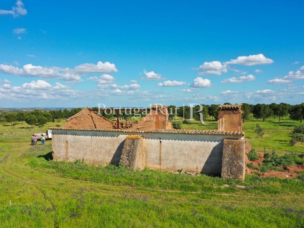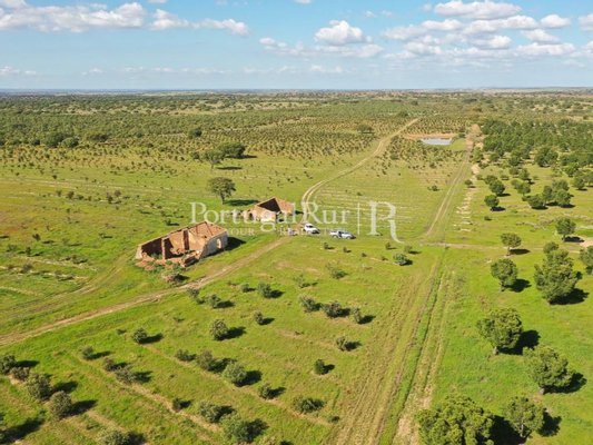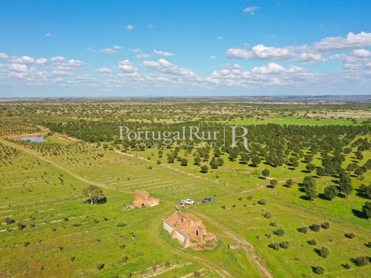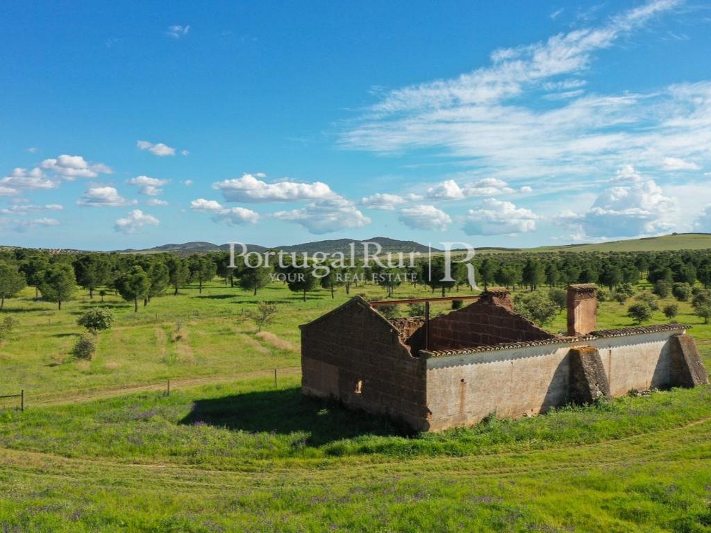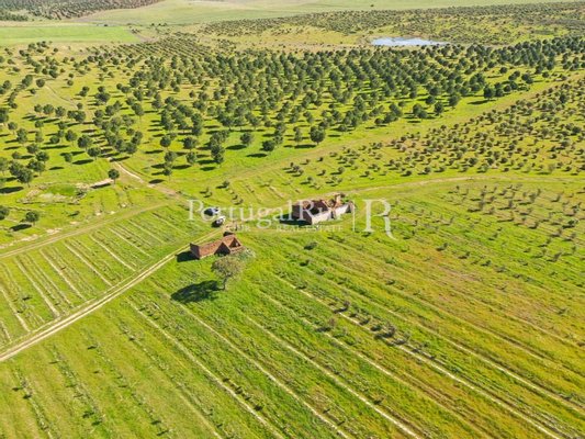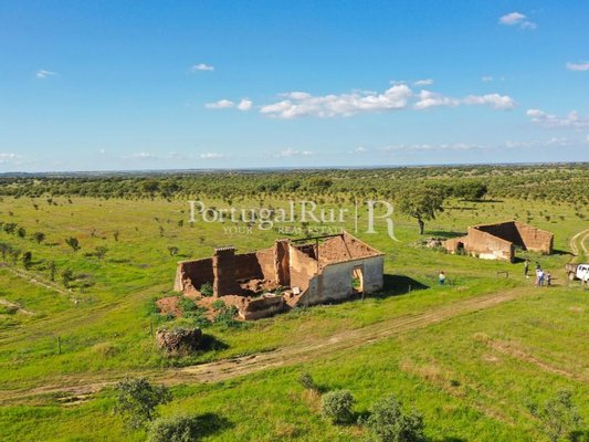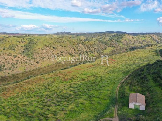 Es besteht aus mehreren Gebäuden, von denen aus wir einen fantastischen Alentejo-Bauernhof mit guten Abmessungen und mehreren Räumen für Tiere hervorheben. Das Stadtgebiet verfügt über eine Fläche von ca. 700 m2 und mehrere Pavillons und Nebengebäude zur Unterstützung der landwirtschaftlichen Tätigkeit, von denen sich einige am Ufer des Flusses befinden.