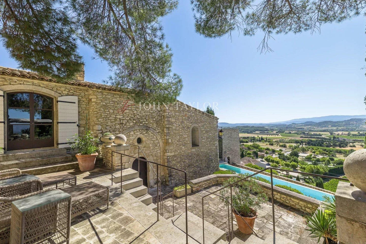 Dieses Grundstück mit einer nutzbaren Fläche von etwa 650 m² umfasst eine Hauptwohnung, die sich über drei Ebenen mit Terrasse und Innenhof erstreckt. Es verfügt über prächtige Empfangsbereiche, eine voll ausgestattete Küche, sechs Schlafzimmer mit eigenem Bad, eine alte Kapelle, einen Weinkeller, einen Turm/Poolhaus und einen 15 x 5 Meter beheizten Infinity-Pool mit atemberaubendem Blick auf das Tal. Jeder Wohnraum ist harmonisch von Terrasse zu Terrasse gestaltet und von Pflanzen umgeben, um ein natürliches Erscheinungsbild zu bewahren.