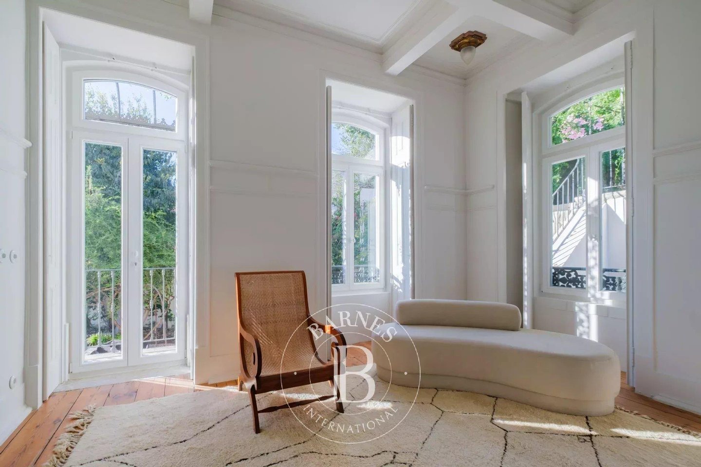 Gebäude aus dem neunzehnten Jahrhundert, das kürzlich renoviert wurde, mit einem fabelhaften Terrassengarten und einzigartigem Blick über die Stadt Lissabon und den Fluss Tejo. Es ist derzeit in 4 Fraktionen unterteilt - Gewerbeflächen, die eine Garage oder Galerie im Erdgeschoss sein können, eine Wohnung mit zwei Suiten im 1. Stock, eine Wohnung mit einem Doppelwohnzimmer und einem separaten Esszimmer, ein Schlafzimmer mit eigenem Bad und ein Büro im 2. Stock und ein Penthouse mit Terrasse im obersten Stockwerk. Im Garten befindet sich zudem ein zusätzliches Gästeschlafzimmer mit Bad en Suite.