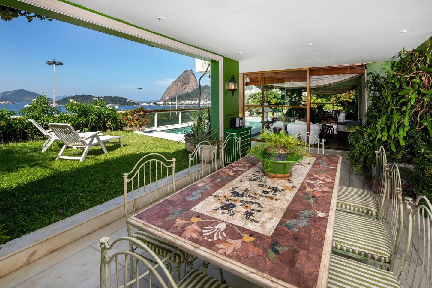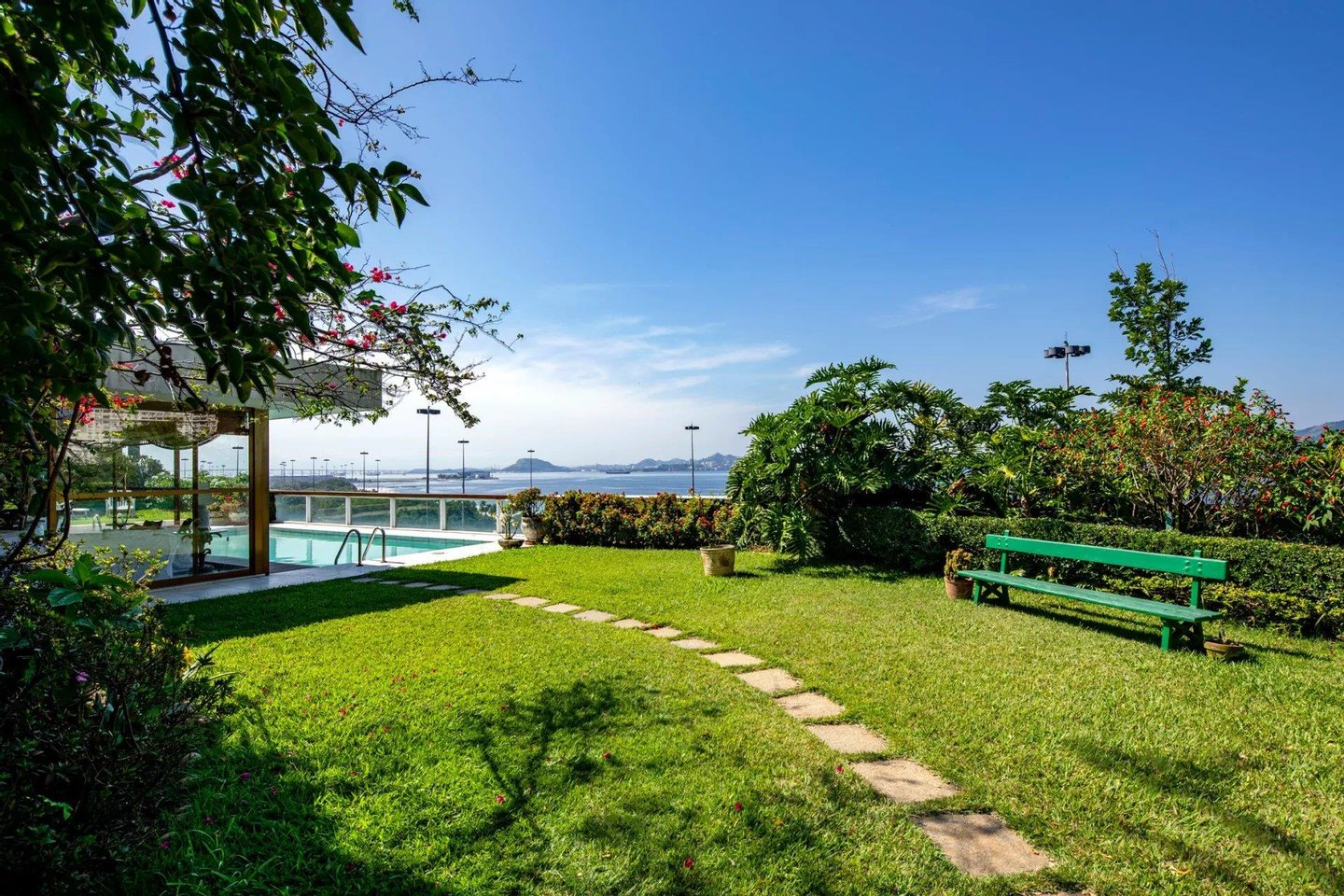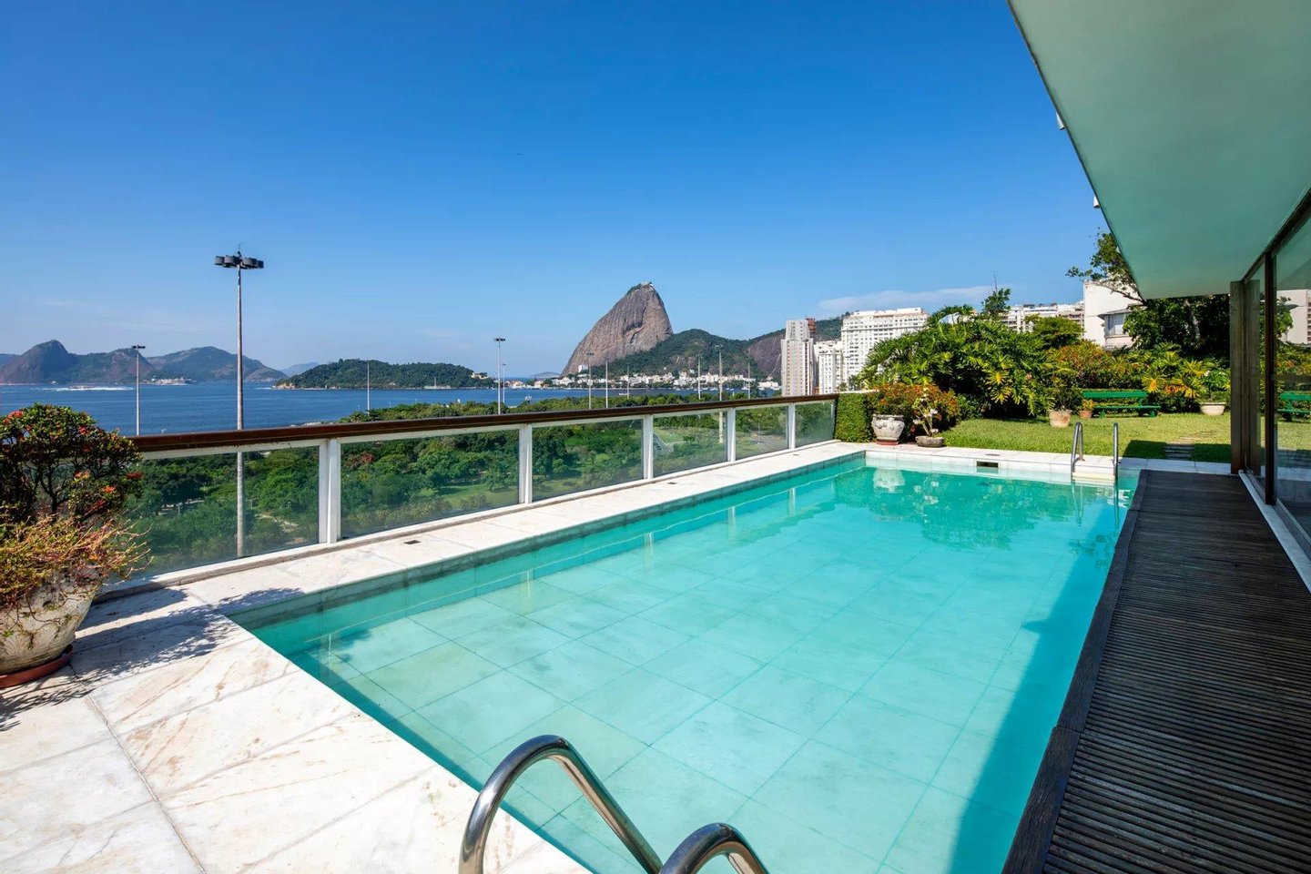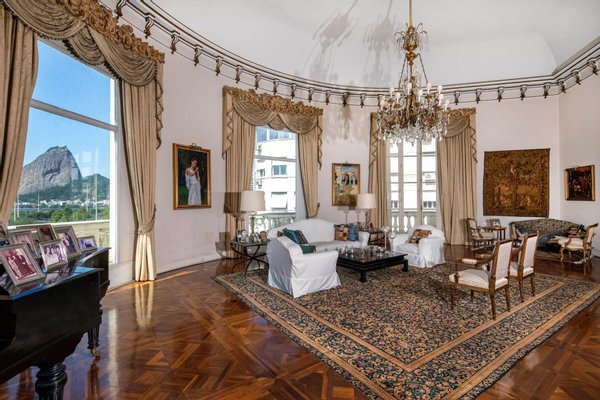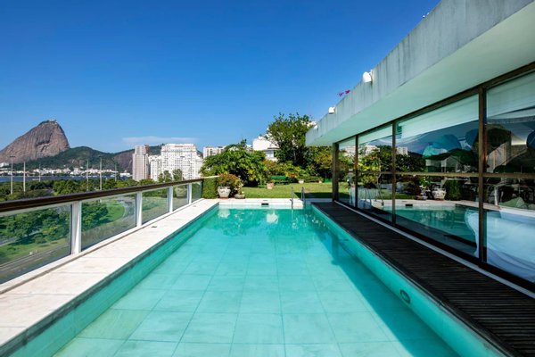 Einzigartiges Penthouse von 40903 sq ft (ca. 4000m2) mit hoher Decke vor der Guanabara-Bucht mit großem Garten, Swimmingpool, eigenem Eingang und privatem Aufzug zum Grundstück. 10 Parkplätze.