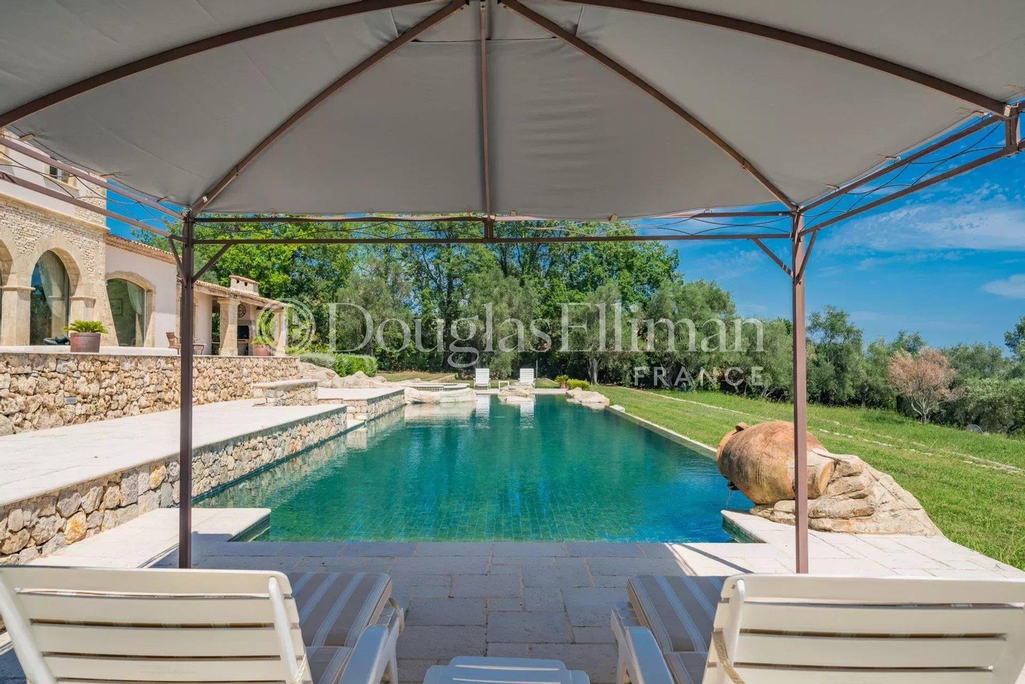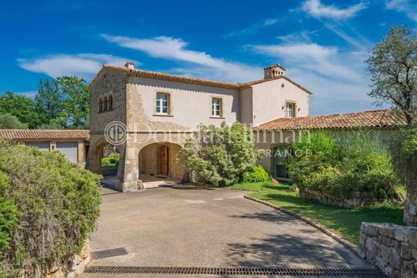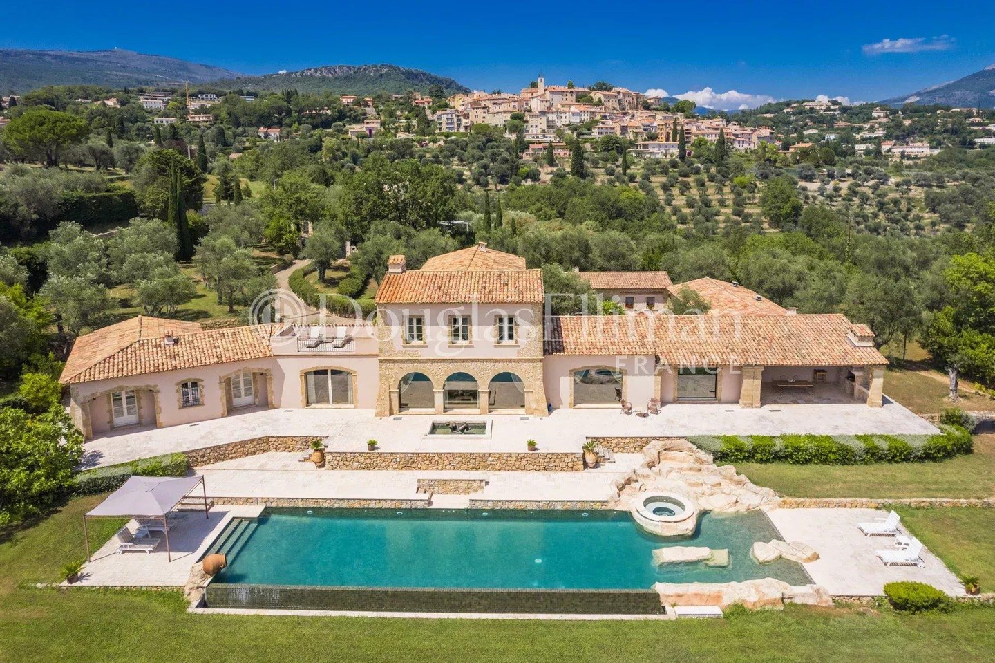 Diese neu gebaute Immobilie bietet eine einzigartige Umgebung und außergewöhnliche Qualität. Es liegt in einem Olivenhain direkt unterhalb des mittelalterlichen Dorfes Chateauneuf de Grasse, 20 Minuten von Cannes und den Stränden entfernt, und bietet einen wirklich spektakulären Blick auf das Meer und die Panoramalandschaft sowie einen schönen Blick auf das Dorf. Das Anwesen besteht aus einer geräumigen Eingangshalle mit Garderobe, einem großen Wohnzimmer mit Steinkamin, einem Esszimmer und einer voll ausgestatteten Küche mit Essbereich und Zugang zur überdachten Terrasse mit Grill. Bibliothek/Büro mit Kamin, 3 Suiten, alle mit eigenem Bad und Einbauschränken. Master-Suite mit Ankleidezimmer Madame und Ankleidezimmer Monsieur, großem Badezimmer und privater Terrasse. Viertes Gästezimmer mit eigenem Bad. Weinkeller, Spielzimmer, Hausmeisterhaus, Dreifachgarage, Abstellräume und ein 24 Meter langer beheizter Infinity-Pool mit Whirlpool und umgeben von einer Steinterrasse. Landschaftsgärten von Jean Mus.