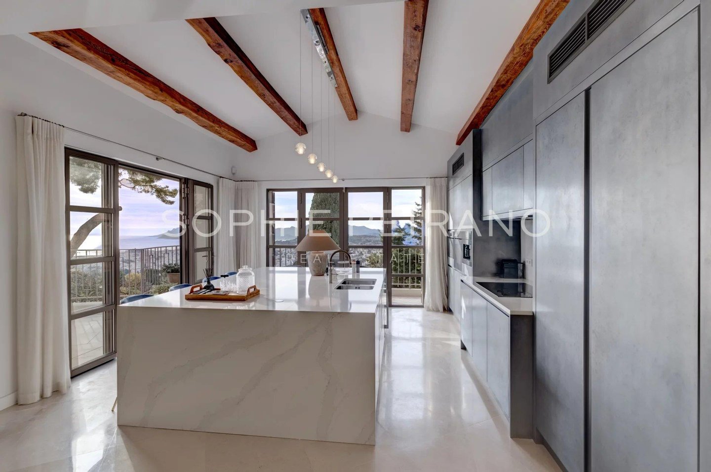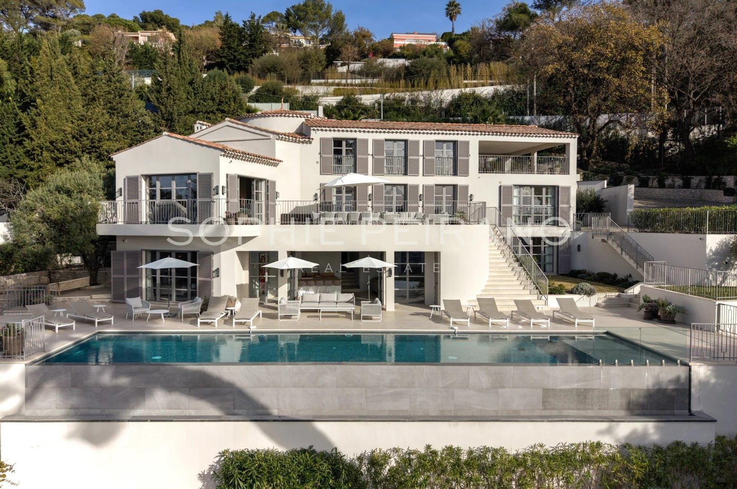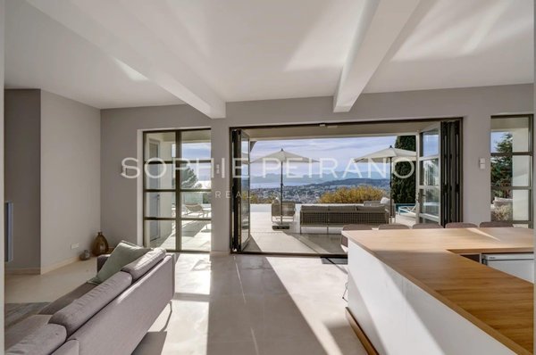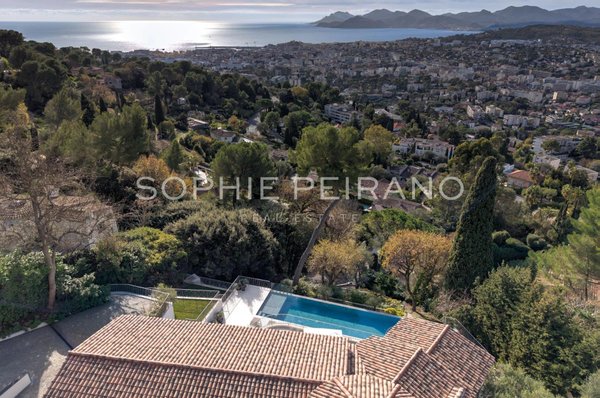 Im begehrten Viertel La Californie gelegen, bietet diese Villa komplett renoviert mit hochwertigen Materialien einen Panoramablick auf das Meer über die Bucht von Cannes.