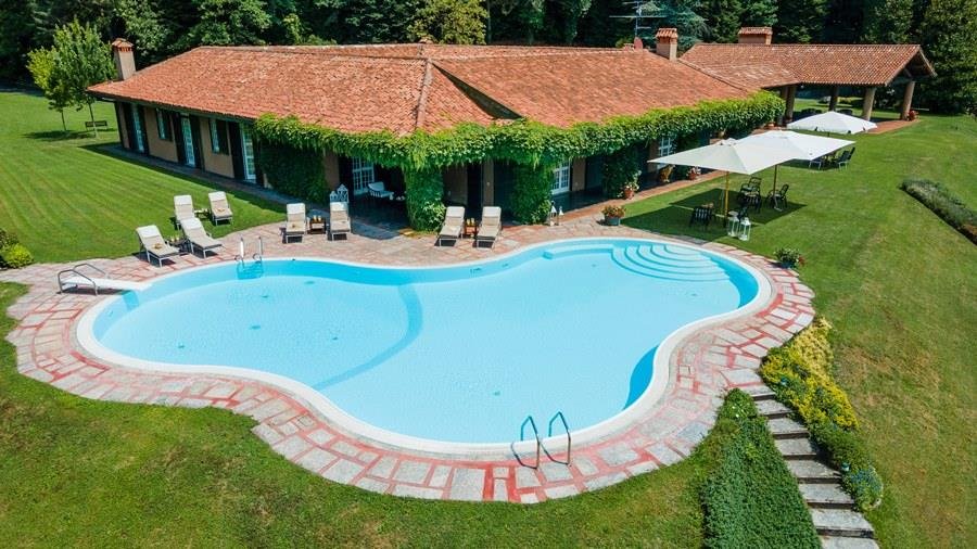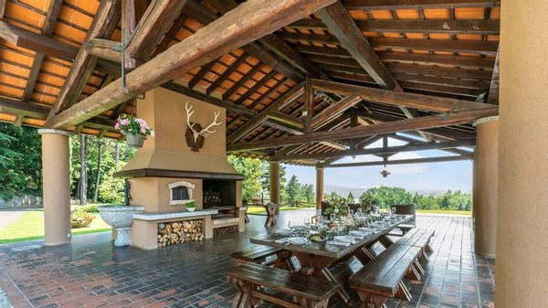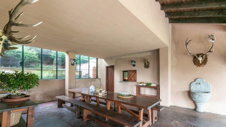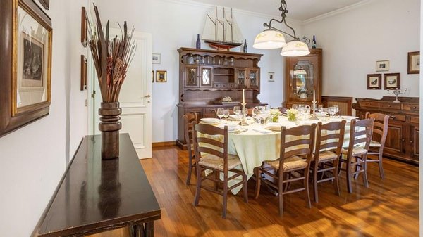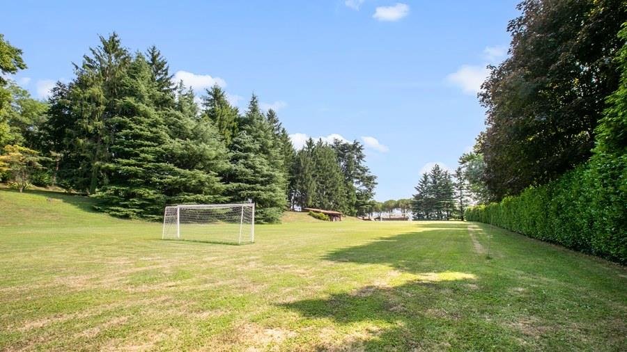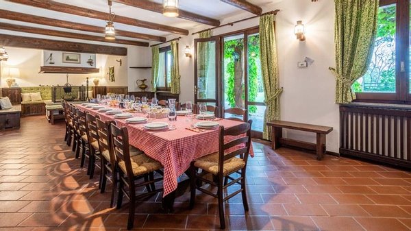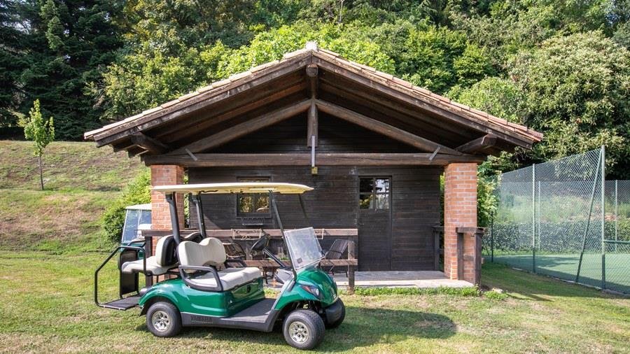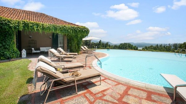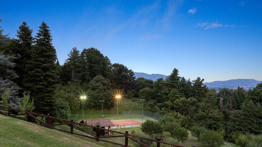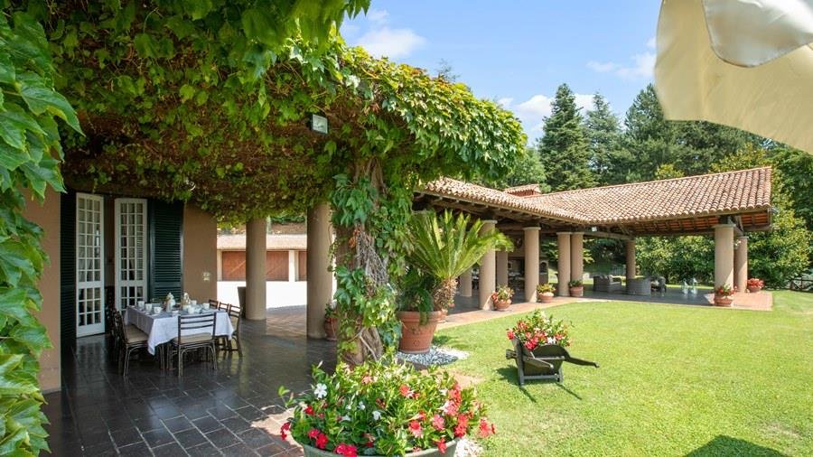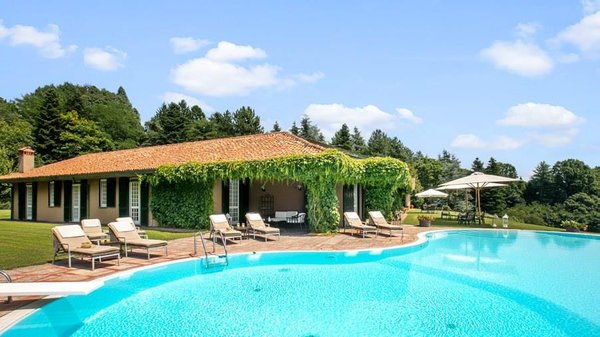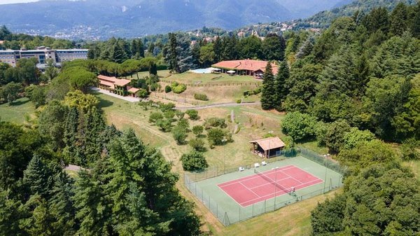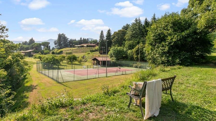 In der Nähe des Comer Sees, nur wenige Minuten vom romantischen Bellagio entfernt, befindet sich die Tenuta di Eupilio. Dieses wunderschöne Anwesen, umgeben von einem einzigartigen Park, besteht aus einem Herrenhaus und einem Stall, der teilweise als Nebengebäude genutzt wird. Die Tenuta di Eupilio besteht aus zwei Gebäuden, einem Herrenhaus und einem Bauernhaus, das teilweise als Stall genutzt wird. Herrenhaus: Es misst ca. 650 Quadratmeter und befindet sich hauptsächlich auf einer Ebene, mit Ausnahme der Waschküche, die sich im Untergeschoss befindet. In einer dominanten Position in Bezug auf das gesamte Anwesen hat es eine rechteckige Form mit einem Außenbereich in der Mitte, wo es möglich ist, in den etwas kühleren Jahreszeiten geschützt vor den Strömungen zu Mittag zu essen. Jedes Zimmer hat einen eigenen direkten Zugang nach draußen und der Haupteingang befindet sich in einem Flur, der zum großen Wohnzimmer mit TV-Bereich und einem schönen Kamin führt. Weiter nach rechts finden wir 2 Doppelzimmer, jedes mit eigenem Bad mit Dusche und Badewanne, und ein Hauptschlafzimmer mit begehbarem Kleiderschrank und eigenem Bad mit Dusche und Badewanne. Auf der linken Seite des Flurs befinden sich das Esszimmer, ein Servicebad, eine gut ausgestattete Küche und zwei Doppelzimmer mit zusammenstellbaren Betten und zwei Badezimmer, 1 mit Dusche und 1 mit Badewanne. Dependance: Das Bauernhaus befindet sich auf einer niedrigeren Terrasse als die Hauptvilla und erstreckt sich über zwei Ebenen. Im Erdgeschoss befindet sich ein großer Wohnbereich mit zentralem Kamin, der von Bänken umgeben ist, auf denen Sie in den kältesten Zeiten das Feuer genießen können, und eine offene Küche mit einem großen Esstisch, der Platz für 18 Personen bietet. Wenn Sie in den ersten Stock hinaufgehen, führt eine Holztreppe in den Schlafbereich, der aus 3 Doppelzimmern und einem Schlafzimmer mit Doppelbett und zwei Badezimmern, eines mit Dusche und eines mit Badewanne, besteht. Das Anwesen ist von einem schönen eingezäunten Park von etwa 6 Hektar Größe umgeben, der größtenteils als englischer Rasen gepflegt wird und auf der Rückseite der Villa von immergrünen Bäumen bepflanzt wird, die die Einfahrt beschatten, während auf der Vorderseite Obstbäume und ein Gewächshaus stehen. Der Eingang zur Tenuta di Eupilio erfolgt über eine Einfahrt, die zur Hauptvilla führt. Wenn wir diese Straße entlanggehen, können wir bereits die Pracht des Parks sehen, indem wir auf einen Wasserfall mit eigenem Teich stoßen, der aus einer natürlichen Quelle auf dem Grundstück entstanden ist. Bei der Ankunft in der Hauptvilla finden wir sofort den überdachten und nicht überdachten Parkplatz des Anwesens und eine große Veranda in Panoramalage, wo wir den Essbereich im Freien finden, der aus einem Esstisch, einem Grill und einem gemauerten Holzofen besteht, sowie einen Entspannungsbereich mit Sofas. An der Seite der Villa befindet sich der Poolbereich mit Ruhebereich und Liegewiesen. Wenn wir in Richtung des Bauernhauses hinuntergehen, finden wir auf der linken Seite des Grundstücks einen Tennisplatz aus Beton mit Umkleideraum und Duschen, während wir auf der rechten Seite einen Amateurfußballplatz und einen Hubschrauberlandeplatz finden. Das schöne, unregelmäßig geformte Schwimmbad (ca. 120 Quadratmeter) wurde in einer dominanten Panoramalage erbaut und ist mit Gegenstromanlage und Hydromassagebereich ausgestattet. Der Zugang zum Pool erfolgt über zwei Leitern, er ist mit Chlor mit weißer PVC-Auskleidung gereinigt, die Beleuchtung ist sowohl innen als auch außen und die Tiefe variiert zwischen 1,40 m und 2,00 m. Die Grasterrasse ist mit Liegestühlen, Sonnenschirmen und einer Entspannungslounge ausgestattet. Das Schwimmbad steht vom letzten Samstag im April bis zum ersten Samstag im Oktober zur Verfügung. Es ist auch möglich, es gegen Aufpreis zu heizen und zum Zeitpunkt der Buchung anzufordern.