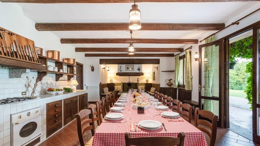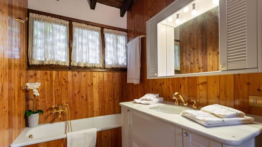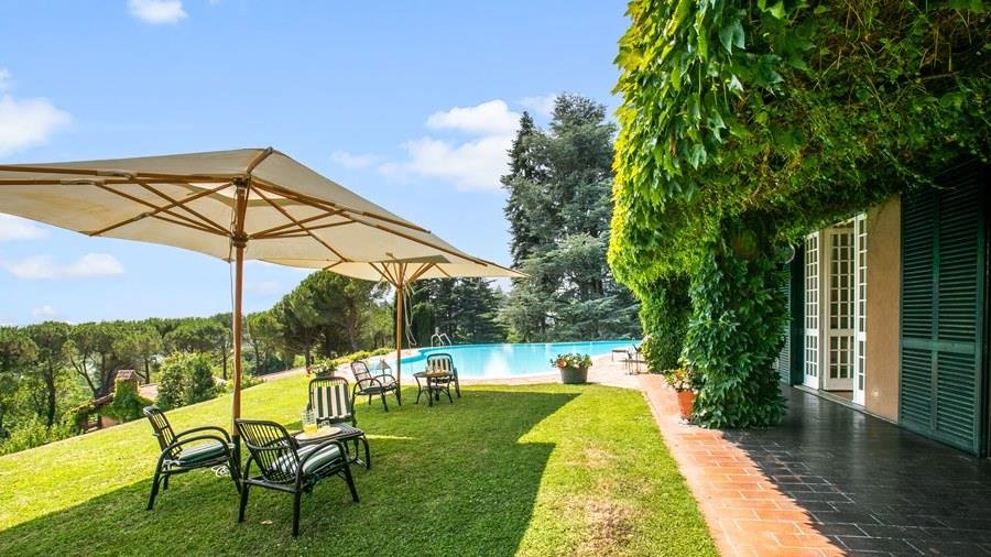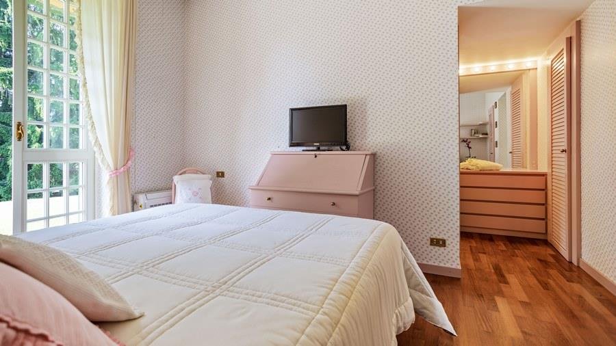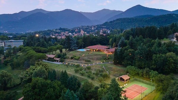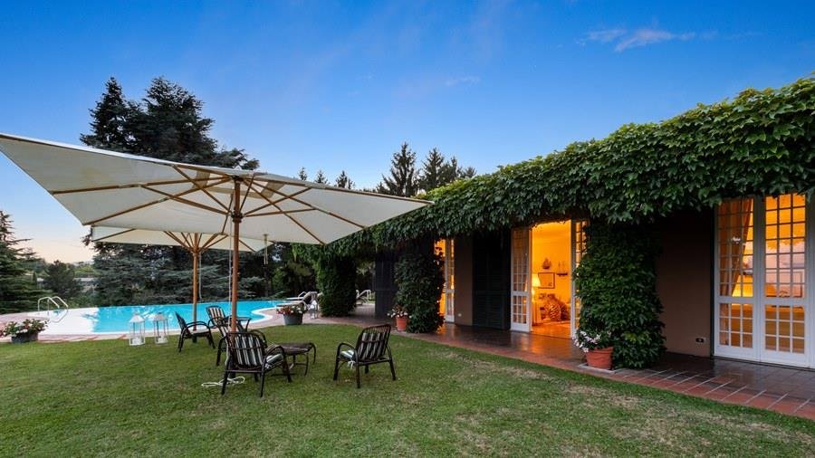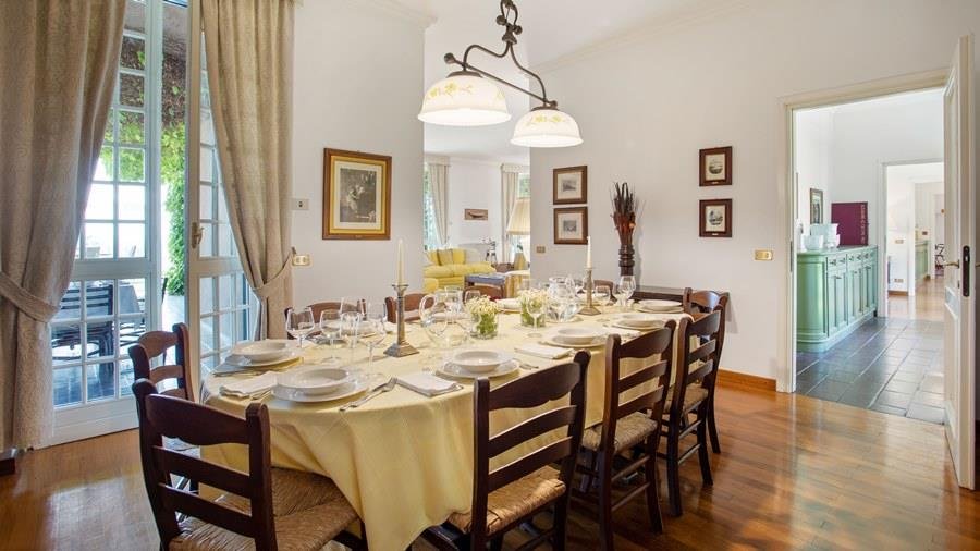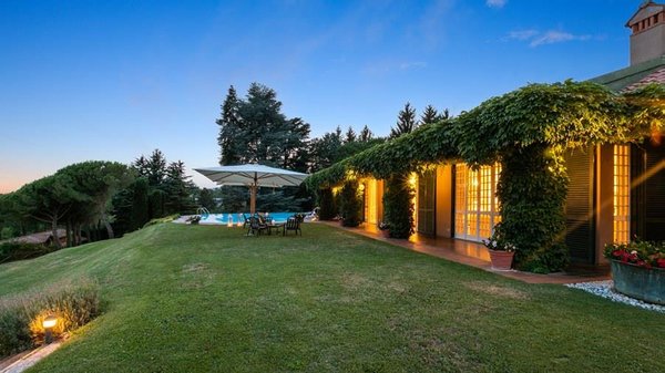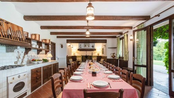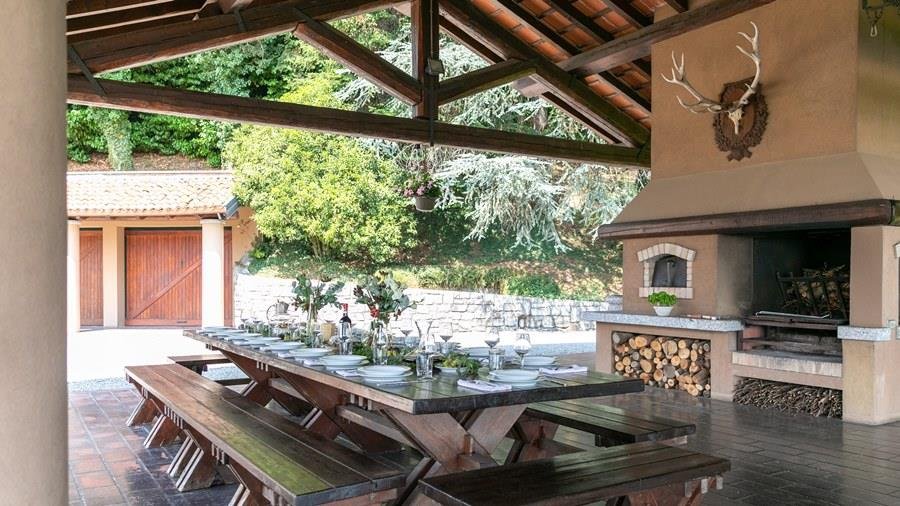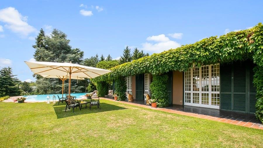 In der Nähe des Comer Sees, nur wenige Minuten vom romantischen Bellagio entfernt, befindet sich die Tenuta di Eupilio. Dieses wunderschöne Anwesen, umgeben von einem einzigartigen Park, besteht aus einem Herrenhaus und einem Stall, der teilweise als Nebengebäude genutzt wird. Die Tenuta di Eupilio besteht aus zwei Gebäuden, einem Herrenhaus und einem Bauernhaus, das teilweise als Stall genutzt wird. Herrenhaus: Es misst ca. 650 Quadratmeter und befindet sich hauptsächlich auf einer Ebene, mit Ausnahme der Waschküche, die sich im Untergeschoss befindet. In einer dominanten Position in Bezug auf das gesamte Anwesen hat es eine rechteckige Form mit einem Außenbereich in der Mitte, wo es möglich ist, in den etwas kühleren Jahreszeiten geschützt vor den Strömungen zu Mittag zu essen. Jedes Zimmer hat einen eigenen direkten Zugang nach draußen und der Haupteingang befindet sich in einem Flur, der zum großen Wohnzimmer mit TV-Bereich und einem schönen Kamin führt. Weiter nach rechts finden wir 2 Doppelzimmer, jedes mit eigenem Bad mit Dusche und Badewanne, und ein Hauptschlafzimmer mit begehbarem Kleiderschrank und eigenem Bad mit Dusche und Badewanne. Auf der linken Seite des Flurs befinden sich das Esszimmer, ein Servicebad, eine gut ausgestattete Küche und zwei Doppelzimmer mit zusammenstellbaren Betten und zwei Badezimmer, 1 mit Dusche und 1 mit Badewanne. Dependance: Das Bauernhaus befindet sich auf einer niedrigeren Terrasse als die Hauptvilla und erstreckt sich über zwei Ebenen. Im Erdgeschoss befindet sich ein großer Wohnbereich mit zentralem Kamin, der von Bänken umgeben ist, auf denen Sie in den kältesten Zeiten das Feuer genießen können, und eine offene Küche mit einem großen Esstisch, der Platz für 18 Personen bietet. Wenn Sie in den ersten Stock hinaufgehen, führt eine Holztreppe in den Schlafbereich, der aus 3 Doppelzimmern und einem Schlafzimmer mit Doppelbett und zwei Badezimmern, eines mit Dusche und eines mit Badewanne, besteht. Das Anwesen ist von einem schönen eingezäunten Park von etwa 6 Hektar Größe umgeben, der größtenteils als englischer Rasen gepflegt wird und auf der Rückseite der Villa von immergrünen Bäumen bepflanzt wird, die die Einfahrt beschatten, während auf der Vorderseite Obstbäume und ein Gewächshaus stehen. Der Eingang zur Tenuta di Eupilio erfolgt über eine Einfahrt, die zur Hauptvilla führt. Wenn wir diese Straße entlanggehen, können wir bereits die Pracht des Parks sehen, indem wir auf einen Wasserfall mit eigenem Teich stoßen, der aus einer natürlichen Quelle auf dem Grundstück entstanden ist. Bei der Ankunft in der Hauptvilla finden wir sofort den überdachten und nicht überdachten Parkplatz des Anwesens und eine große Veranda in Panoramalage, wo wir den Essbereich im Freien finden, der aus einem Esstisch, einem Grill und einem gemauerten Holzofen besteht, sowie einen Entspannungsbereich mit Sofas. An der Seite der Villa befindet sich der Poolbereich mit Ruhebereich und Liegewiesen. Wenn wir in Richtung des Bauernhauses hinuntergehen, finden wir auf der linken Seite des Grundstücks einen Tennisplatz aus Beton mit Umkleideraum und Duschen, während wir auf der rechten Seite einen Amateurfußballplatz und einen Hubschrauberlandeplatz finden. Das schöne, unregelmäßig geformte Schwimmbad (ca. 120 Quadratmeter) wurde in einer dominanten Panoramalage erbaut und ist mit Gegenstromanlage und Hydromassagebereich ausgestattet. Der Zugang zum Pool erfolgt über zwei Leitern, er ist mit Chlor mit weißer PVC-Auskleidung gereinigt, die Beleuchtung ist sowohl innen als auch außen und die Tiefe variiert zwischen 1,40 m und 2,00 m. Die Grasterrasse ist mit Liegestühlen, Sonnenschirmen und einer Entspannungslounge ausgestattet. Das Schwimmbad steht vom letzten Samstag im April bis zum ersten Samstag im Oktober zur Verfügung. Es ist auch möglich, es gegen Aufpreis zu heizen und zum Zeitpunkt der Buchung anzufordern.