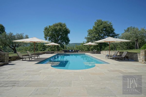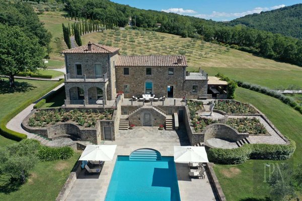 Ein herrliches Anwesen mit Panoramablick inmitten perfekt gepflegter Gärten und Grundstücke. Dieses prestigeträchtige Anwesen begann mit einer Ruine eines Bauernhauses. Der derzeitige Besitzer, ein Team von talentierten lokalen Steinmetzen und Künstlern, wurde mit Hilfe eines Rekultivierungshofs und viel Blut, Schweiß und Tränen über einen Zeitraum von 2 Jahren fertiggestellt, ohne Kosten zu scheuen, und in den nächsten 2 Jahren wurden die Gästehäuser gebaut und schließlich wurde das Hausmeisterhaus gebaut, um dieses außergewöhnliche Anwesen mit Blick auf das Niccone-Tal und an der Grenze zum exklusiven Reschio-Anwesen zu vervollständigen. Das Niveau der Verarbeitung ist hervorragend mit wiederverwerteten Gewölbedecken und cremeweißen Steinböden, die einst von römischen Soldaten aus der Region Pulia betreten wurden, was diesem Anwesen ein elegantes, luxuriöses Gefühl verleiht. Es ist ideal für diejenigen, die eine schlüsselfertige, exklusive Residenz mit viel Platz für Gäste und Personal in einer außergewöhnlichen Lage mit hervorragender Aussicht suchen. Vier Anwesen, zwei Swimmingpools, ein Tennisplatz, ein Fitnessraum, ein Weinkeller, ein Olivenhain und Gärten – ein hochmodernes, makelloses italienisches Anwesen, voll besetzt und bereit zum Genießen.