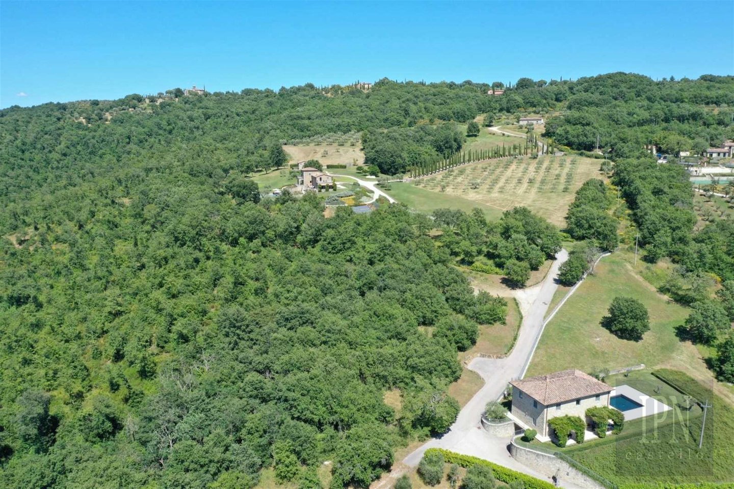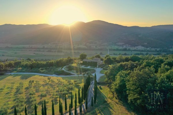 Das Anwesen befindet sich auf einer Fläche von 17,8 Hektar in der begehrtesten Lage Umbriens. Das Niccone Valley und grenzt an das weltberühmte Landgut Reschio. In der Nähe der toskanischen Stadt Cortona und des Trasimenischen Sees in Umbrien. Eine einzigartige, stressfreie Immobilie für diejenigen, die ein Höchstmaß an Opulenz und Ruhe suchen. Ein hohes Maß an Privatsphäre und Sicherheitssystemen, zwei Zufahrtsstraßen mit elektrischen Toren, die einen privaten Zugang zum größeren der beiden Gästehäuser ermöglichen.