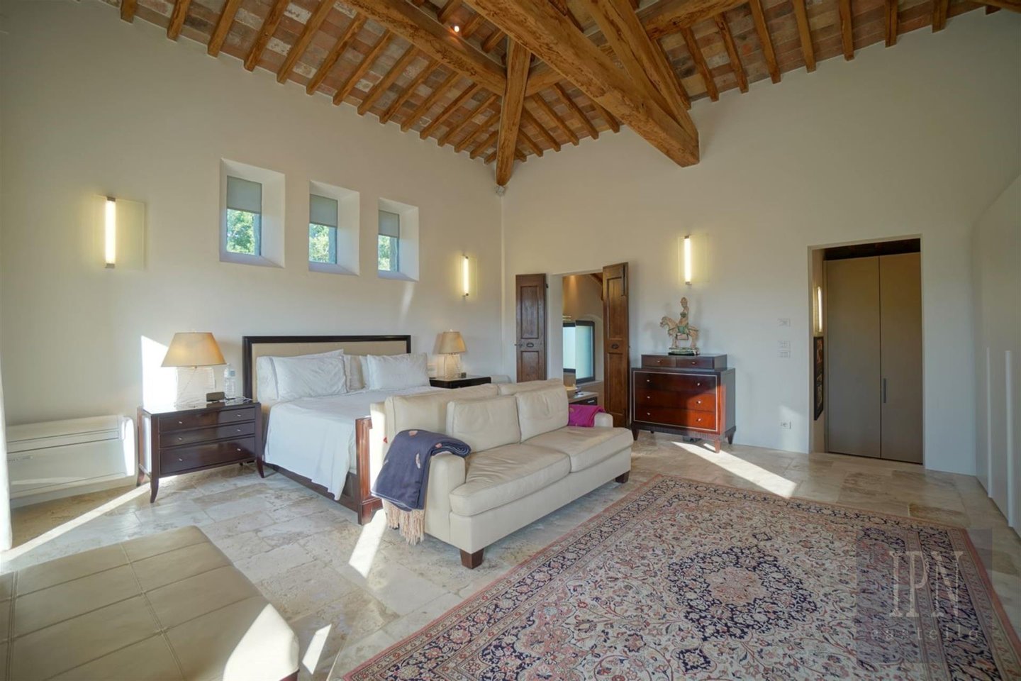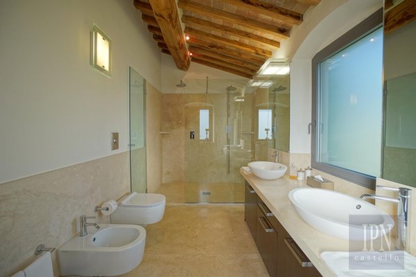 Das Haupthaus wurde nach den höchsten Spezifikationen gebaut und verfügt über all den Luxus, den man erwarten würde, geschickt in einem komfortablen und entspannenden Zuhause arrangiert. Das große, dreistöckige Anwesen mit herrlichem Blick auf das Niccone-Tal wurde auf dem Grundriss eines alten Bauernhauses erbaut.