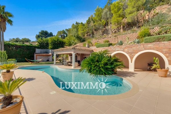Theoule-Sur-Mer – In dominanter Lage, in einer grünen Umgebung, nur wenige Minuten von den Stränden entfernt, befindet sich diese Villa von ca. 340m². Mit 138m² Nebengebäuden, ist auf einem Grundstück von 4280 m² mit Swimmingpool und Poolhaus gebaut.