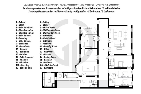 Eine äußerst seltene Immobilie, derzeit als repräsentatives Empfangsapartment mit zwei prächtigen Master-Suiten gestaltet, die jedoch auch das bemerkenswerte Potenzial bietet, zu einem Familienapartment mit bis zu fünf Schlafzimmern umgewandelt zu werden. Die Projektionspläne für 3, 4 oder 5 Schlafzimmer finden Sie am Ende der Fotogalerie.