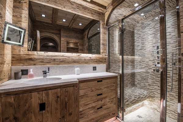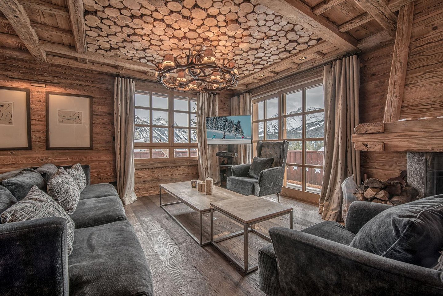 Altholzatmosphäre "wie in den Bergen" und hochwertige Oberflächen, ultra ordentlich und maßgeschneidert, für dieses großartige 160 m² große Chalet im Herzen des Resorts, das eine komplette Etage mit Wohnzimmer mit großzügigem Doppelwohnzimmer mit Kamin und einem Speisesaal mit einer sonnigen Terrasse mit herrlicher, ungehinderter Aussicht besitzt, und eine voll ausgestattete offene Küche mit Weinkeller. Auf der Nachtseite gibt es eine Master-Suite mit Kamin zum Bett, Bad, Dusche, Umkleideraum und Toilette, ein zweites geräumiges Doppelzimmer mit Hammam-Dusche sowie zwei Junior-Schlafzimmer mit Etagenbetten und einem Doppelzimmer, jedes mit Dusche oder Badezimmer. In der Nähe der Skipisten und der luxuriösen Geschäfte des Zentrums, in einem kleinen Weiler in einer ruhigen Gegend. Die seltene Perle von Courchevel.