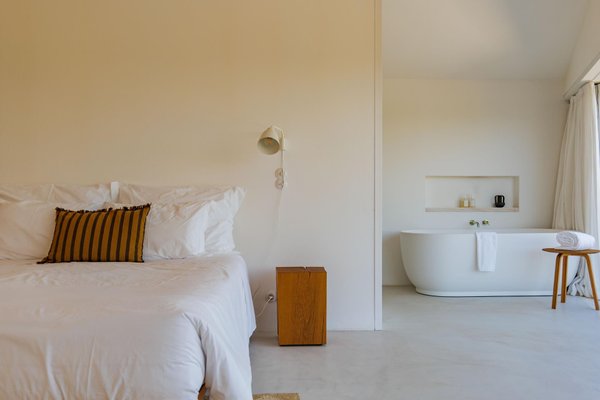 Die Master-Suite, die sich in einem separaten Flügel befindet, verfügt über ein Kingsize-Bett und eine freistehende Badewanne, während die zweite Suite ein kreatives Layout mit drei Einzelbetten (darunter eines auf einem Zwischengeschoss) bietet. Eine dritte Suite verfügt über ein weiteres Kingsize-Bett, das viel Platz und Privatsphäre für Familie oder Gäste bietet. Ein zusätzliches viertes Badezimmer mit Zugang zum Innen- und Außenbereich ist ideal zum Abspülen nach einem Tag am Strand.