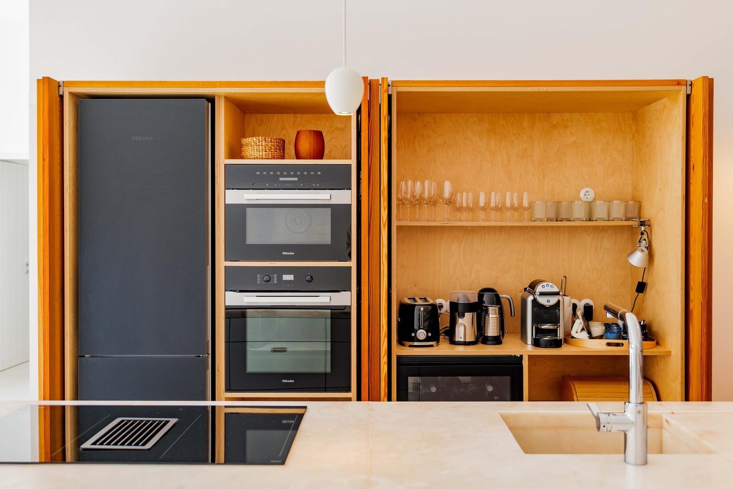 Die hochmoderne Miele-Küche der Villa eignet sich perfekt für die Gourmetküche, ergänzt durch offene Wohnbereiche und einladende Außenbereiche, darunter ein Sandgarten und ein erfrischender Pool – alles für ein müheloses Leben im Innen- und Außenbereich.