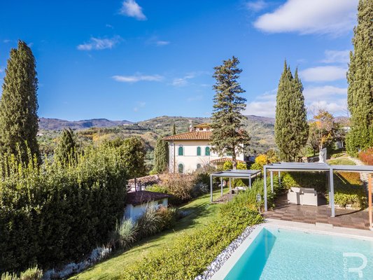 Diese prächtige Villa ist eine historische Residenz mit besonderem Charme, eingebettet in eine ruhige und exklusive Hügellandschaft, nur wenige Minuten von Pistoia entfernt. Sie wurde Anfang des neunzehnten Jahrhunderts vom Ingenieur Parri erbaut, dem Entwerfer der ersten Eisenbahnlinie in Mittelitalien. Anlässlich der Einweihung dieser Eisenbahnlinie wohnten auch der Großherzog von Toskana Leopold II. und der Kronprinz von Italien in der Villa, was ihre historische Bedeutung bis heute greifbar macht.