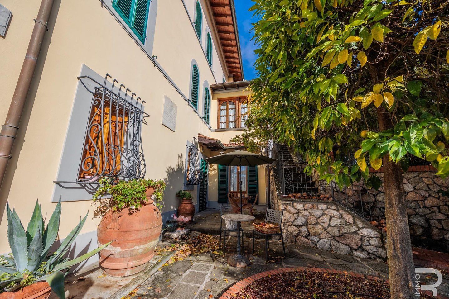 Das historische Limonaia ist heute ein einladender Frühstücksraum mit eigener Küche, Holzofen und Kamin. Die Villa verfügt außerdem über eine weitere professionelle Küche. In einem separaten Gebäude, das 2015 renoviert wurde, der ehemaligen Werkstatt, wurden zwei charmante Apartments mit einer privaten Terrasse und Räumen als Keller, Lagerhaus und Speisekammer geschaffen. Ein weiteres kleines Holzgebäude beherbergt die Wäscherei, den Bügelraum und die Toiletten für das Personal.