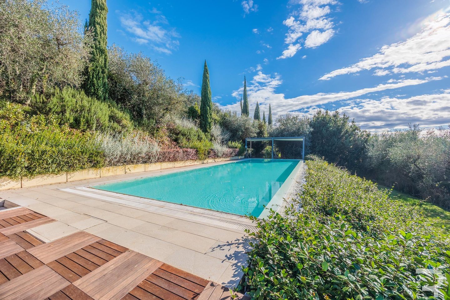 Nach einer sorgfältigen Restaurierung in den 80er Jahren und einer kompletten Neurenovierung 2011/2012 verbindet die Villa heute den Charme vergangener Zeiten mit modernem Komfort. Elegante Deluxe-Zimmer, Suiten und Apartments bieten eine entspannte Atmosphäre, die harmonisch in den großzügigen Park einfügt. Umgeben von Blumen, Zypressen, Obstbäumen, aromatischen Kräutern und imposanten, jahrhundertealten Magnolien, lädt das Anwesen mit seinem panoramischen Infinity-Pool, einer gemütlichen Poolbar, einem Outdoor-Wellnessbereich mit Sauna und Whirlpool sowie einem kleinen Fitnessraum zum Verweilen ein. Mehrere terrassierte Gärten mit Pavillons und liebevoll gestalteten Entspannungsbereichen schaffen zusätzliche Rückzugsorte, umgeben von Grünflächen.