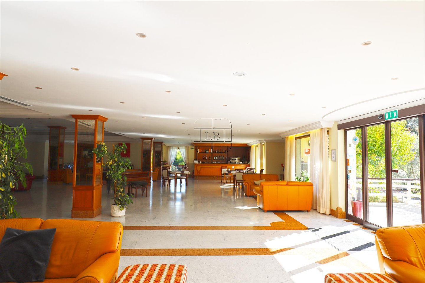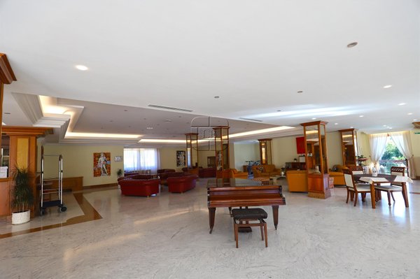 Zu den Innenräumen gehören helle Lounges, ein Restaurant, eine Pizzeria mit Holzofen, Bankettsäle, ein Konferenzbereich und ein 750 m² großes Spa mit Hydrotherapie-Pool, Sauna, türkischem Bad und Kneipp-Pfad. Die Anlage verfügt auch über einen Fitnessraum und ein Schönheitszentrum.