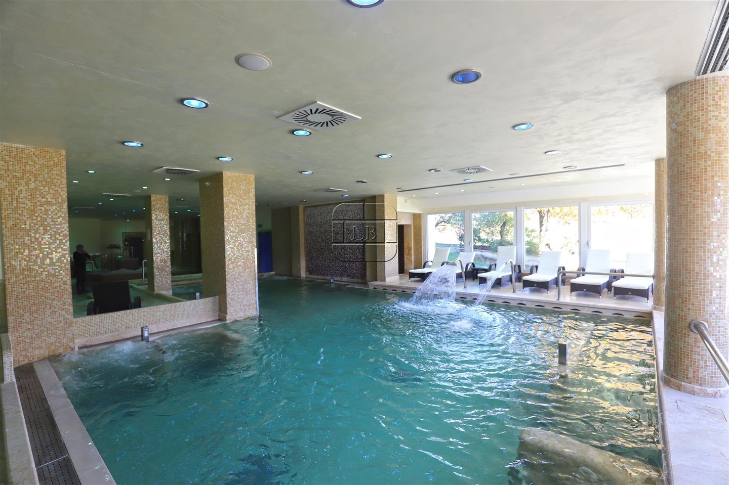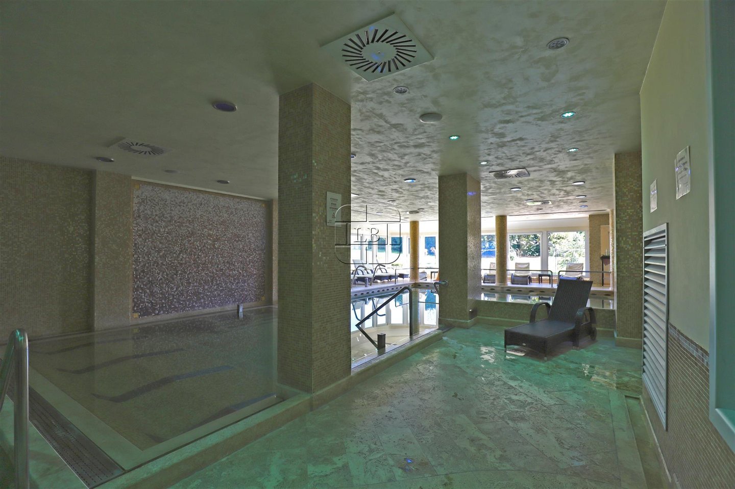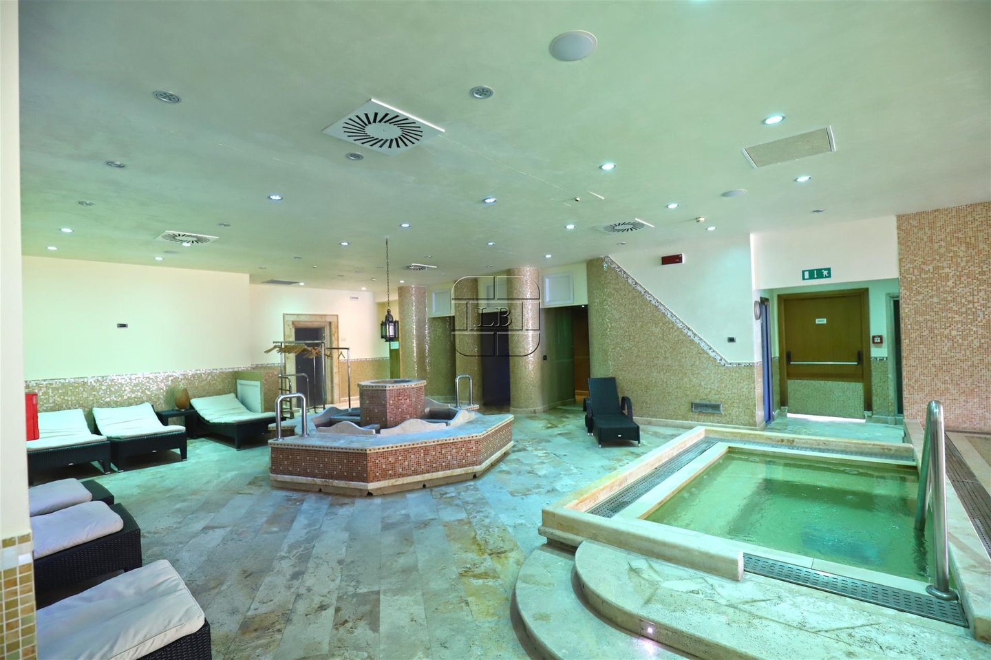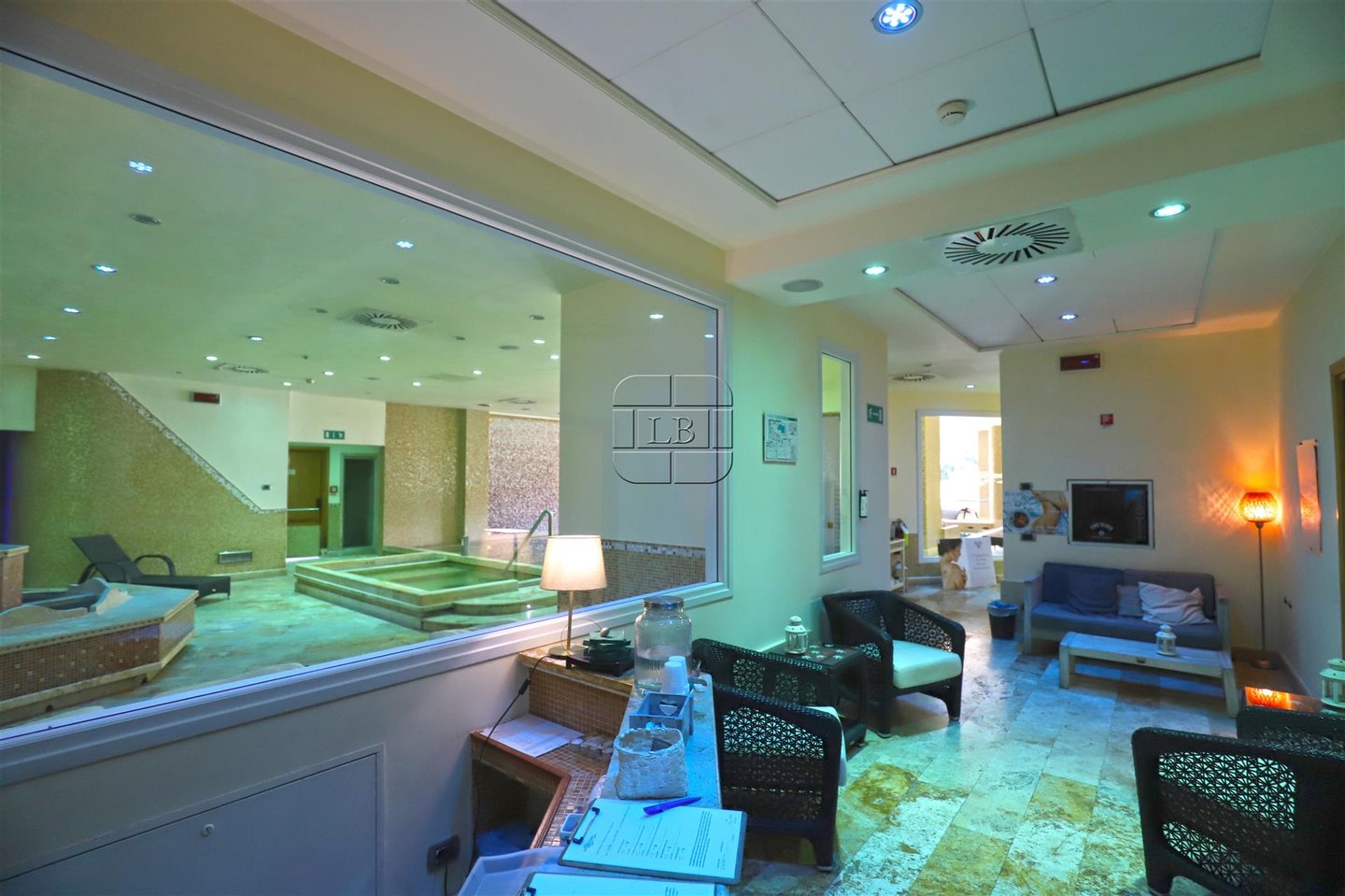 Spa-Bereich: 750 qm - Hydrotherapie-Pool, Thalassotherapie-Pool, Indoor-Entspannungsbereich, türkisches Bad, finnische Sauna, Biosauna, Eiskabine, Kneipp-Pfad.