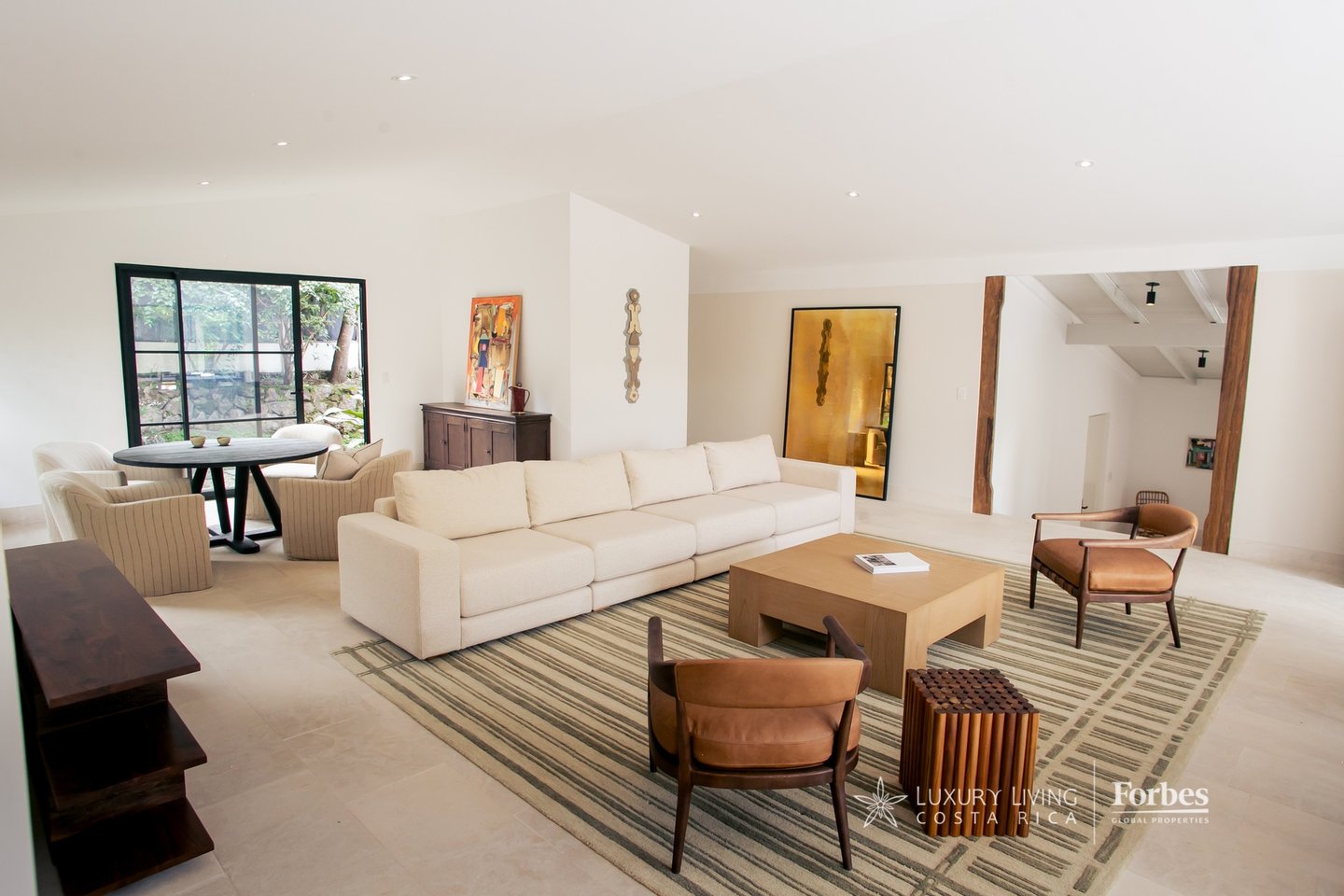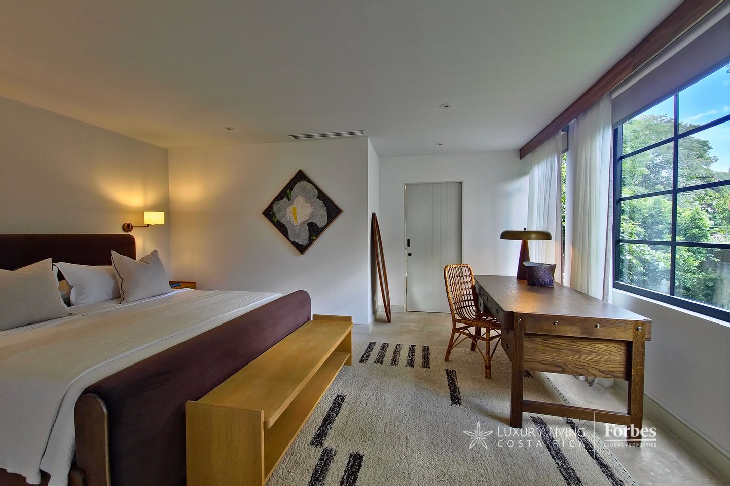 The renovation, carried out by one of the most reknown arquitect studio, blends ten years of expertise in luxury property design with a focus on aesthetics and functionality. The result is a home where every space has been thoughtfully crafted — from expansive social areas that open to a mature garden, to brand-new imported and custom-designed furniture included in the sale. At the heart of the garden, a majestic Guanacaste tree — Costa Rica’s national symbol — brings shade, freshness, and character to the landscape.