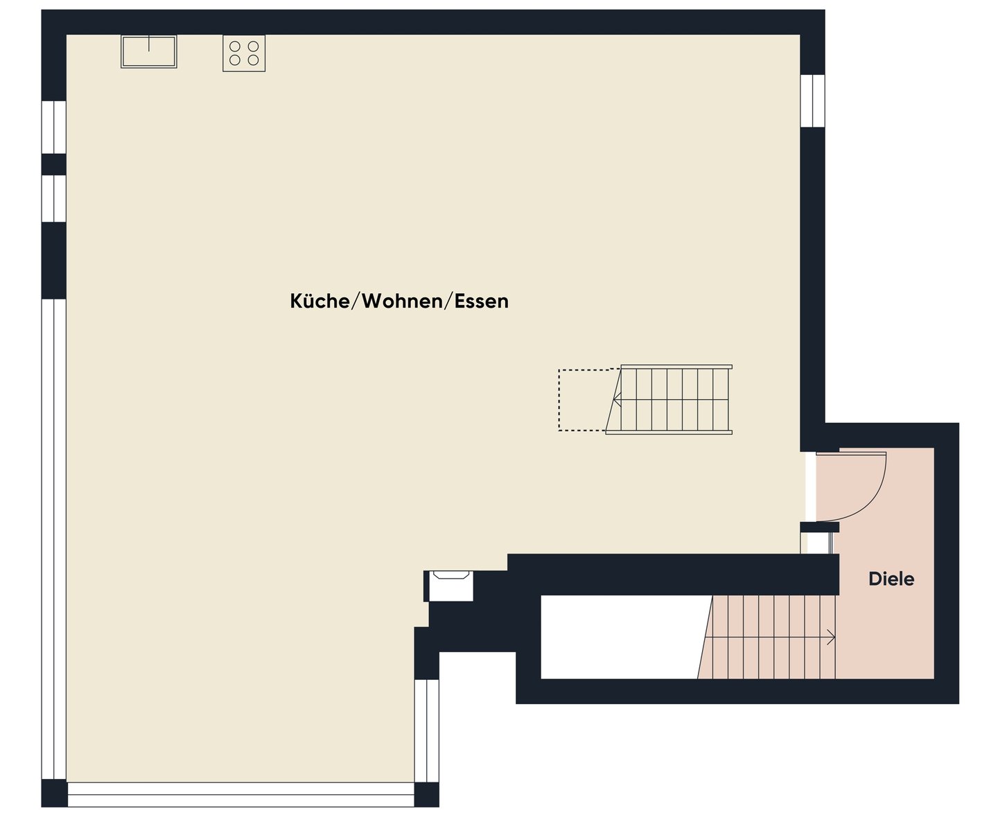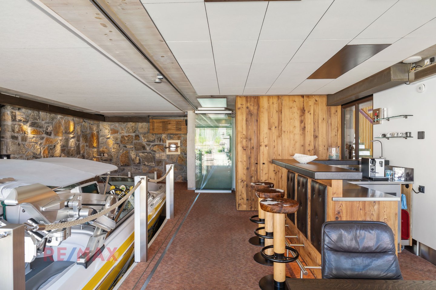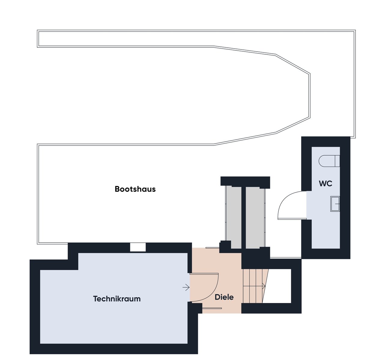 Das Erdgeschoss setzt diesem Objekt die Krone auf – ein einzigartiger Bar- und Loungebereich direkt am Wasser. Stapelbare Glaswände öffnen den Raum vollständig oder schützen ihn bei Bedarf. Hier sitzen Sie das ganze Jahr über wie in einer privaten Marina – nur näher, privater und exklusiver. Bei Wind, Wetter, Sonnenschein oder lauen Abenden: Dieser Raum ist das Herzstück für jede Bootsfahrt, jeden Sommerabend und jeden Besuch.