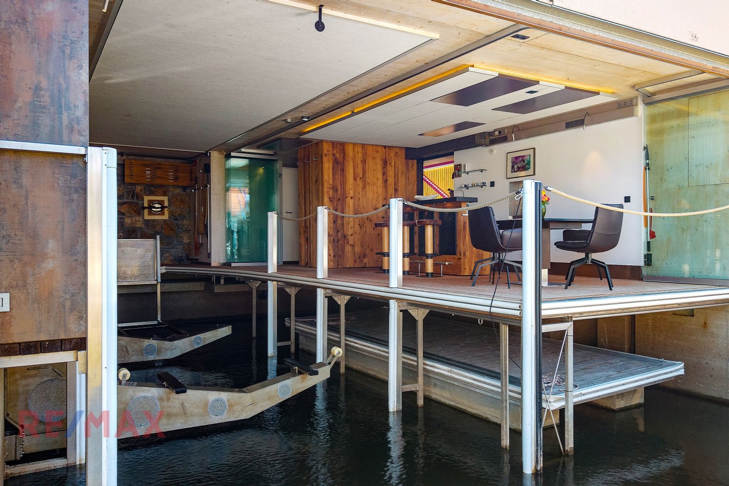 Das Erdgeschoss setzt diesem Objekt die Krone auf – ein einzigartiger Bar- und Loungebereich direkt am Wasser. Stapelbare Glaswände öffnen den Raum vollständig oder schützen ihn bei Bedarf. Hier sitzen Sie das ganze Jahr über wie in einer privaten Marina – nur näher, privater und exklusiver. Bei Wind, Wetter, Sonnenschein oder lauen Abenden: Dieser Raum ist das Herzstück für jede Bootsfahrt, jeden Sommerabend und jeden Besuch.