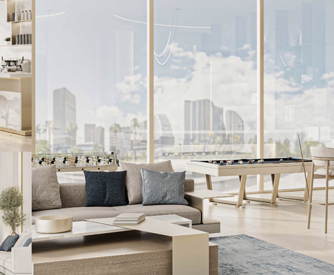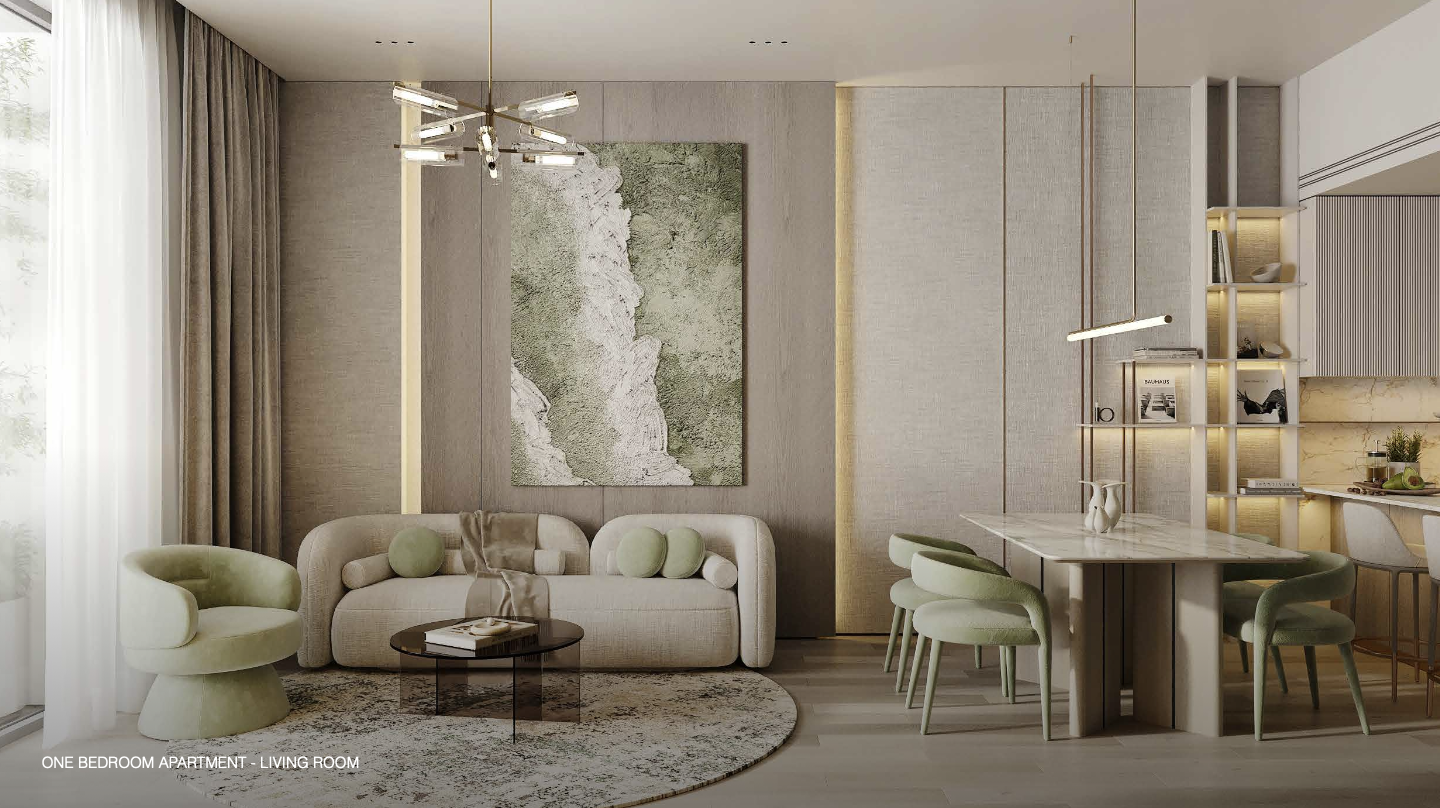 Der Rooftop Infinity Pool mit Skyline-Blick lädt zum Entspannen und Genießen ein. Hier finden Sie Sonnenliegen und Cabana Lounges, um die herrliche Aussicht zu genießen. Das Rooftop Sky Deck und die Panorama-Dachterrasse bieten einmalige Möglichkeiten, die landschaftlich gestalteten Dachgärten zu erkunden. Ruhe- und Relaxzonen im Freien sowie üppige Gartenwege und Grünflächen sorgen für ein idyllisches Ambiente. Das moderne, voll ausgestattete Gym bietet Cardio- und Krafttrainingsbereiche. Die bodentiefen Fenster mit Ausblick schaffen eine Wellness-Atmosphäre für Training und Entspannung. Im exklusiven Residents Clubhouse erwarten Sie Designer-Lounge-Bereiche, eine Bar und Social Counter sowie elegante Aufenthaltsbereiche für Treffen und Arbeiten. Für Familien- und Gemeinschaftszonen stehen Grünflächen für Spaziergänge und ruhige Sitzbereiche im Freien zur Verfügung. Die Promenaden innerhalb der Anlage laden zum Flanieren ein. Die voll möblierten Apartments verfügen über Smart-Home-Systeme für die digitale Steuerung von Licht, Klima und Sicherheit. Hochwertige Küchen, moderne Badezimmer und stilvolle Innenausstattung sorgen für Komfort und Eleganz. Große Balkone und bodentiefe Fenster bieten eine herrliche Aussicht. Die energieeffiziente Bauweise rundet das Gesamtpaket ab.