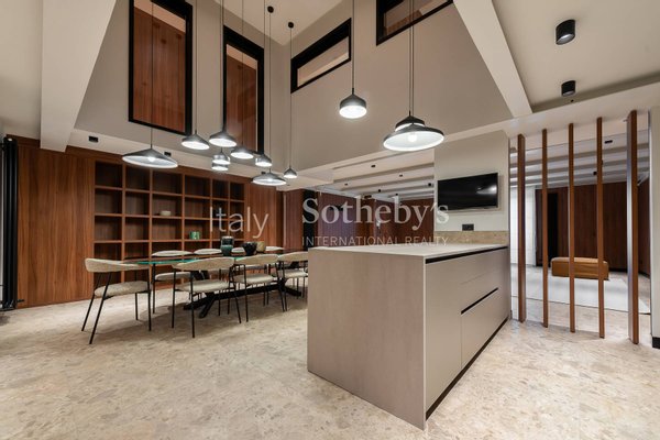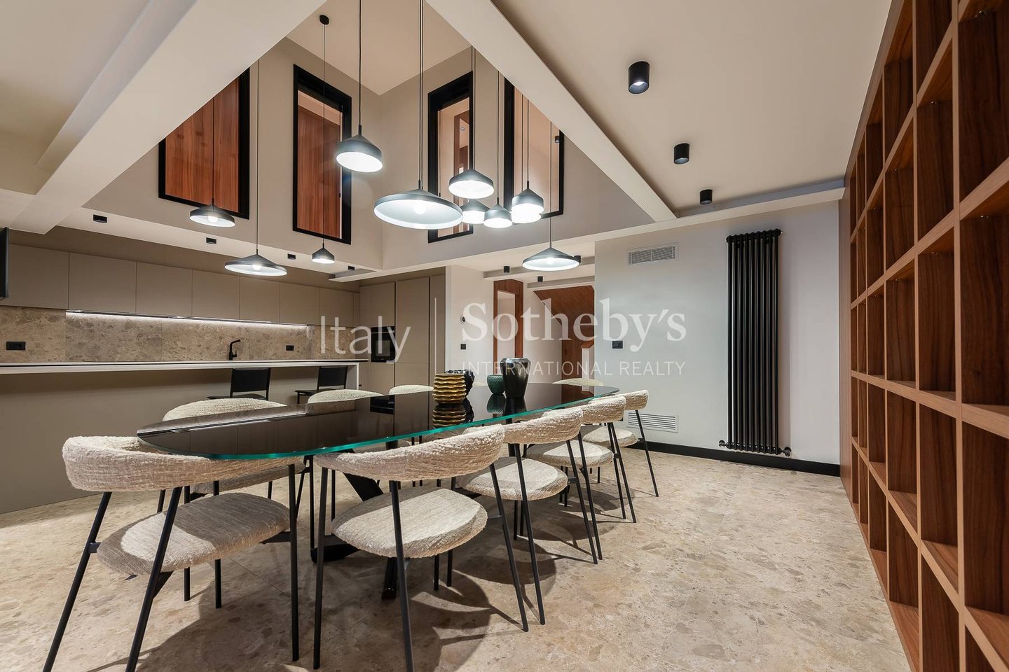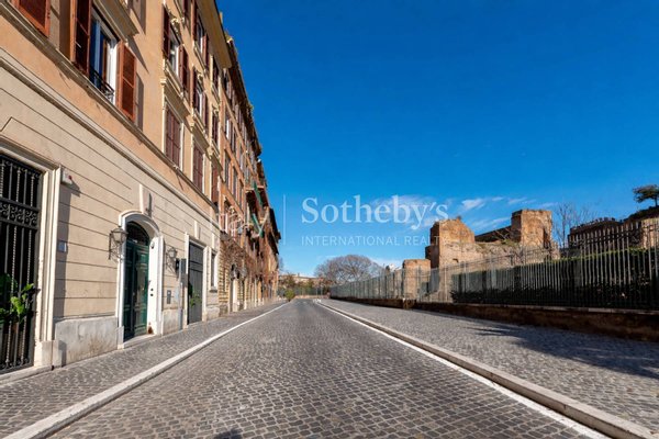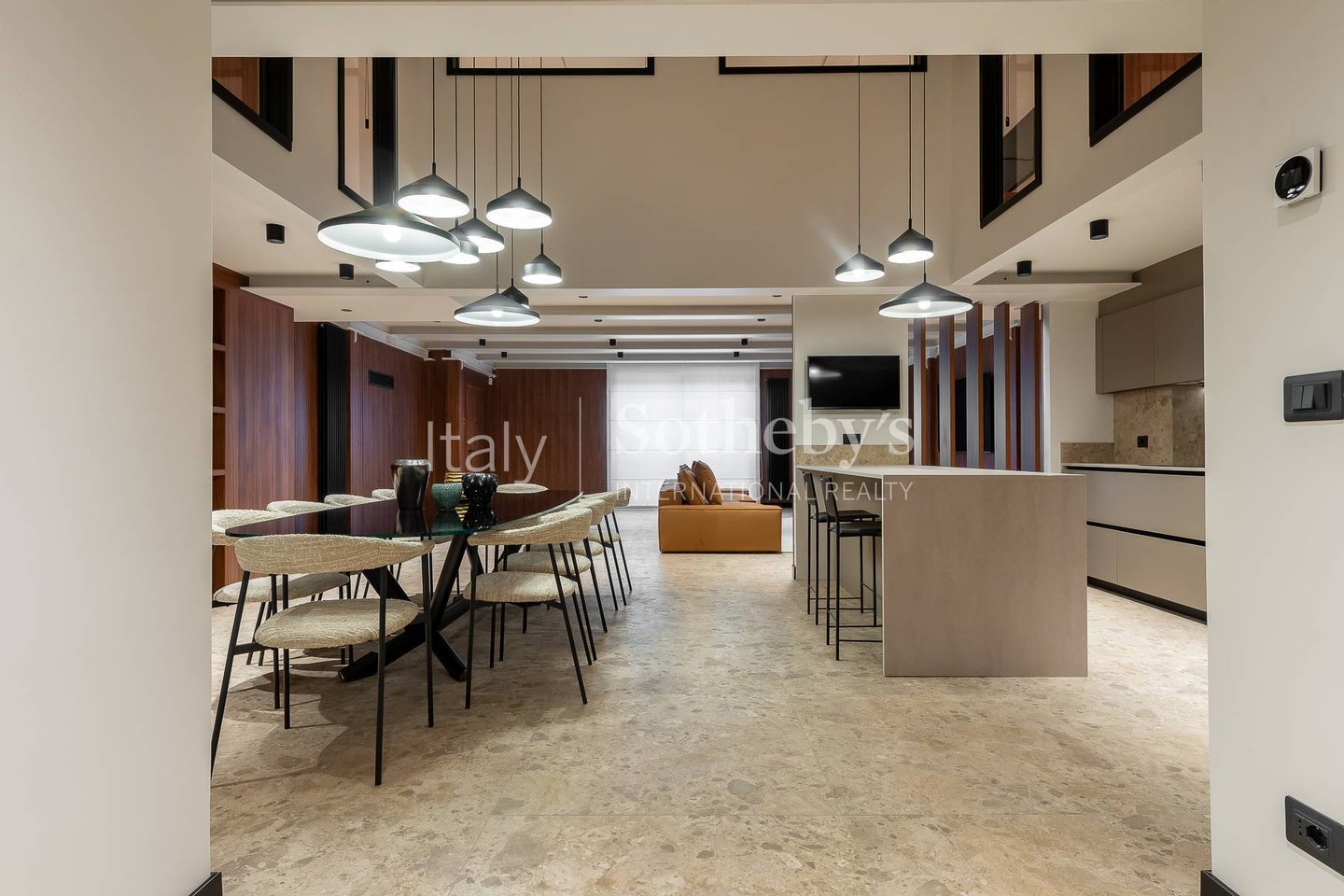On the prestigious Via di San Teodoro, recently enhanced with a refined pedestrian promenade and overlooking the Roman Forum and the Palatine Hill, this exclusive 285 sqm loft spans two levels and has undergone an impeccable renovation.