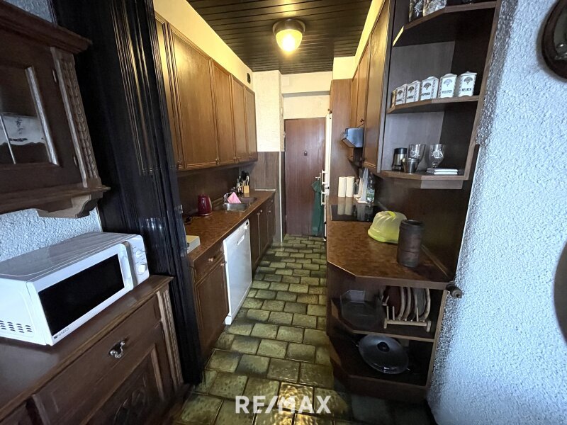 Die Küche mit integriertem Essbereich bietet ausreichend Platz für eine große Essecke und lädt zu gemeinsamen Mahlzeiten mit Familie und Freunden ein. Das anschließende Wohnzimmer mit Loggia eröffnet einen beeindruckenden Blick über St. Pölten, unter anderem auf den Neugebäudeplatz und die Innenstadt.