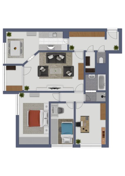 Neben dem Wohnbereich stehen Ihnen drei weitere Zimmer zur individuellen Nutzung zur Verfügung – ideal als Schlafzimmer, Gästezimmer oder Büro. Das Badezimmer ist mit Badewanne und Dusche ausgestattet, zusätzlich gibt es ein separates WC. Ein praktischer Abstellraum sorgt für zusätzlichen Stauraum. Ein Kellerabteil wird genutzt.