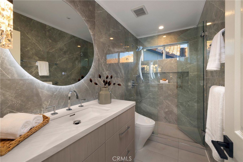 Genießen Sie Panoramablicke von diesem umfangreich renovierten Haus im bewachten Ritz Pointe. Mit einer perfekten, erhöhten Lage am Ende einer Sackgasse bietet dieses Grundstück einen atemberaubenden Blick auf die Monarch Beach Golf Links über den Canyon bis zum Meer. Der Abend bringt spektakuläre Sonnenuntergänge und wunderschöne Ausblicke auf die Nachtlichter. Die Upgrades wurden erst im letzten Jahr umfassend renoviert und kosten über 300.000 Dollar und sind in einem vom Verkäufer bereitgestellten Zusatz aufgeführt. Der einzigartige und vielseitige Grundriss bietet Optionen für die meisten Situationen. Die Hauptsuite bietet eine begehbare Terrasse, ein angebautes Loft und ein komplett renoviertes Bad mit einem fertigen (California Closets) begehbaren Kleiderschrank. Die Küche ist atemberaubend renoviert, einschließlich Schränken, allen Geräten sowie Porzellan-Wasserfall-Arbeitsplatten und Fliesenwänden. Ein großes zweites Loft grenzt an die zweiten Schlafzimmer und das renovierte Bad. Ein großer Hinterhof mit eingebautem Grill bietet eine inspirierende Aussicht und reichlich Platz für Gäste. Wenn Sie nach dem ultimativen Küstenleben in Südkalifornien suchen, könnte dies der richtige sein. Ein privater Gemeinschaftsweg führt Sie zum Salt Creek Beach. Alles in Reichweite: Weltklasse-Restaurants, Einkaufsmöglichkeiten und Strände, darunter Salt Creek Beach, Monarch Beach, The Waldorf Astoria Monarch Beach Resort, The Ritz Carlton, Monarch Beach Golf Links, Dana Point Harbor.