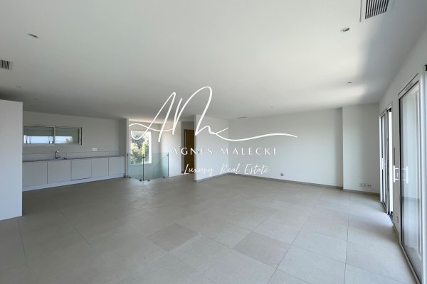 CAVALAIRE - LES CALANQUES AREA. New property with 151 m2 of living space offering breathtaking sea views. Built with quality materials and meticulous craftsmanship, it stands out for its functional layout and high-end features. On the ground floor,