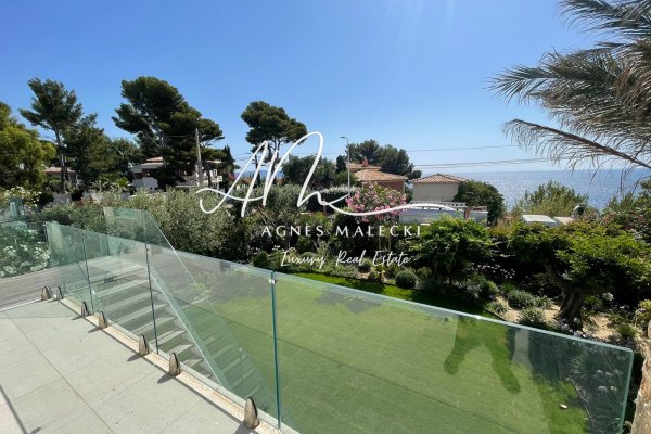 CAVALAIRE - LES CALANQUES AREA. New property with 151 m2 of living space offering breathtaking sea views. Built with quality materials and meticulous craftsmanship, it stands out for its functional layout and high-end features. On the ground floor, it comprises an entrance hall, a laundry room, a storage space under the stairs, a shower room with toilet, as well as a bedroom with a closet, bathroom, and toilet. A 19 m2 garage with direct access to the villa completes this level. Upstairs, a large living/dining room with an equipped American kitchen (high-end German appliances) opens onto a terrace with sea views and direct access to the garden via an external staircase. This level also includes an office or bedroom with a shower room and toilet, as well as a bedroom with a dressing room and an adjoining shower room with toilet. The land is suitable for a swimming pool. Close to all amenities. CAVALAIRE - LES CALANQUES AREA. New property offering 150 m2 of living space with a breathtaking sea view. Built with high-quality materials and expert craftsmanship, it stands out for its functional layout and premium features. Ground Floor: Entrance hall, Laundry room, Storage space under the stairs, Shower room with toilet, Bedroom with built-in closet, bathroom, and WC, 19 m2 garage with direct access to the villa. Upper Level: Spacious living/dining area with an open-plan fully equipped kitchen (high-end German appliances), Sea-view terrace with direct stairway access to the garden, Office or bedroom with shower room and toilet, Bedroom with dressing room, en-suite shower room, and WC. The land is suitable for a swimming pool . Ideally located, close to all amenities.