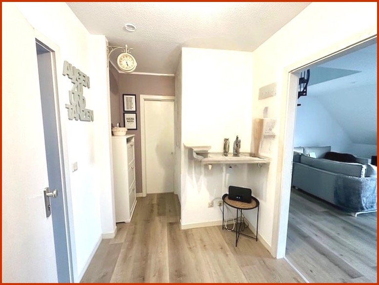 Bereits beim Betreten überzeugt die Wohnung mit einer großzügigen Diele, die ausreichend Platz für Garderobe und Schuhschrank bietet. Angenehm praktisch: dezent hinter dem Garderobenbereich befindet sich das Gäste-WC. Links angrenzend liegt die Küche, funktional positioniert und ideal in den Grundriss eingebunden.