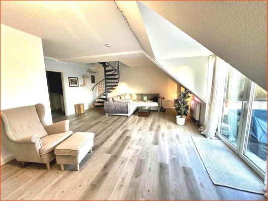 •Helle Räume mit besonderem Maisonette-Charakter und Wendeltreppe zur oberen Ebene
