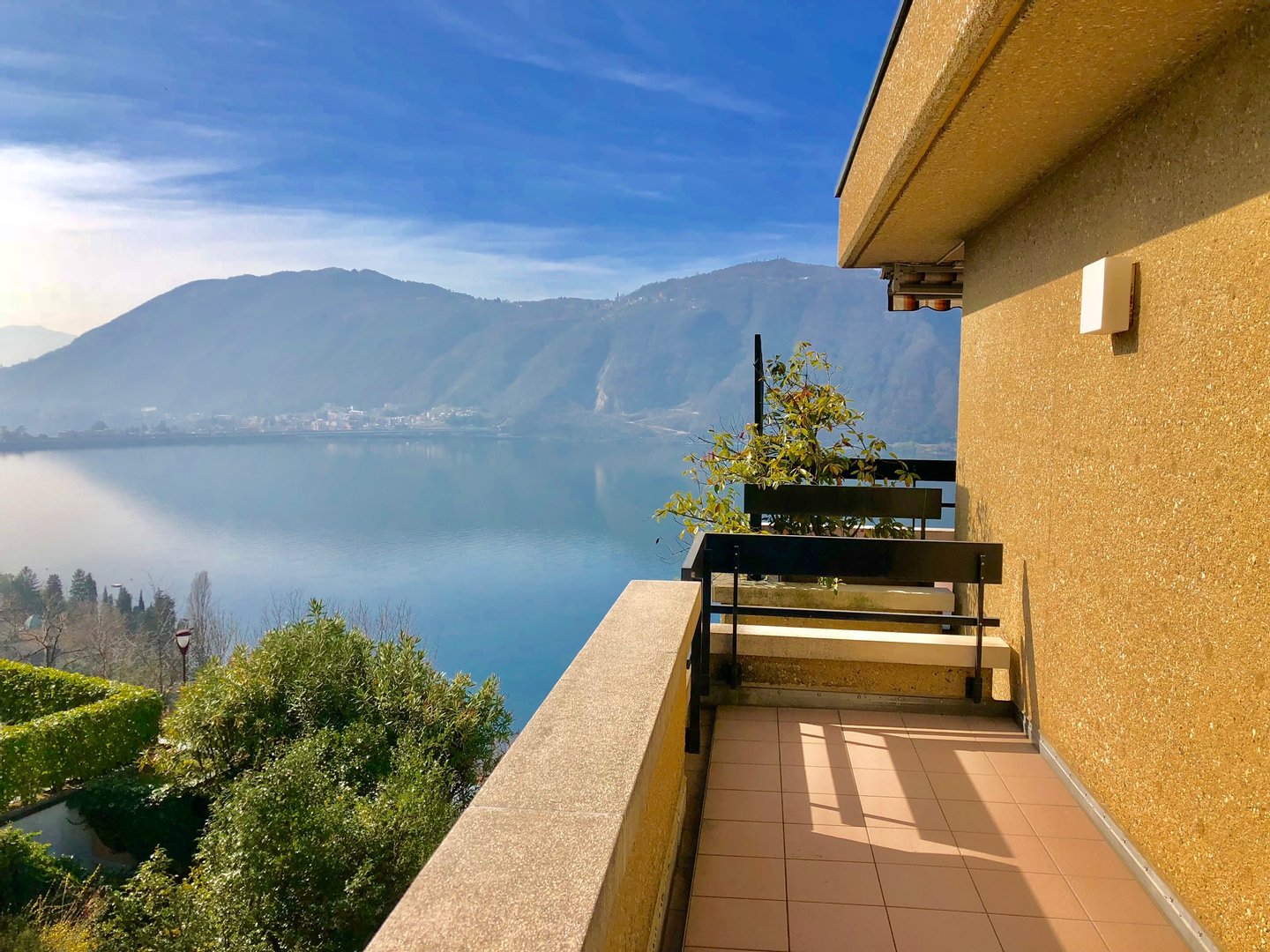 Diese wunderschöne Villa befindet sich in Campione D’Italia, einer italienischen Enklave in der Schweiz. Von hier genießen Sie einen traumhaften Blick über den See, die umliegende Berge und auf Lugano.