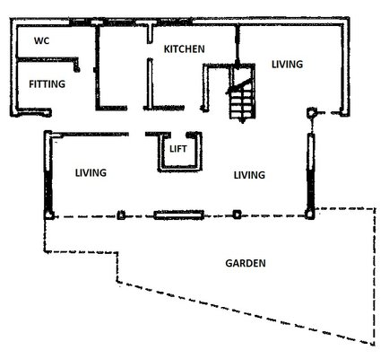 Die Wohnnutzfläche der Villa beträgt ca. 508 qm, aufgeteilt auf 4 Etagen, und ist wie folgt aufgeteilt: EG: Eingangsbereich, Wohnküche, großes und helles Wohnzimmer mit Ausgang auf die Terrasse und in den Garten, Esszimmer, Gäste-WC. 1 OG: 5