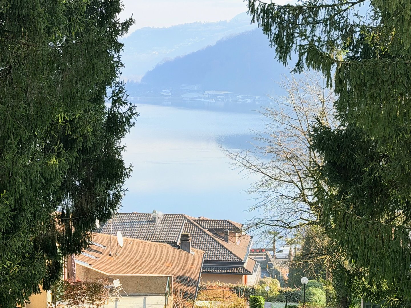 Diese 3-Zimmer-Wohnung befindet sich in einer ruhigen und sonnigen Lage, auf der italienischen Seite des beliebten Ortes Ponte Tresa, mit sehr schönem Blick auf den Luganer See. Alle Dienstleistungen, der See sowie die schöne Uferpromenade sind in