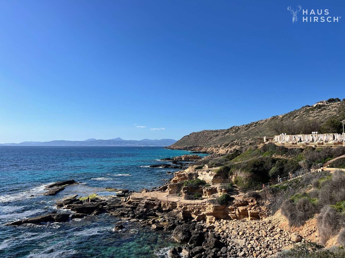 In unmittelbarer Umgebung befinden sich eindrucksvolle Steilküsten, Badebuchten mit türkisblauem Wasser sowie Zugang zu beliebten Beachclubs wie dem „Mhares Sea Club“. Die Gegend ist vor allem bei Einheimischen und Residenten beliebt, die das mediterrane Lebensgefühl abseits des Massentourismus schätzen.