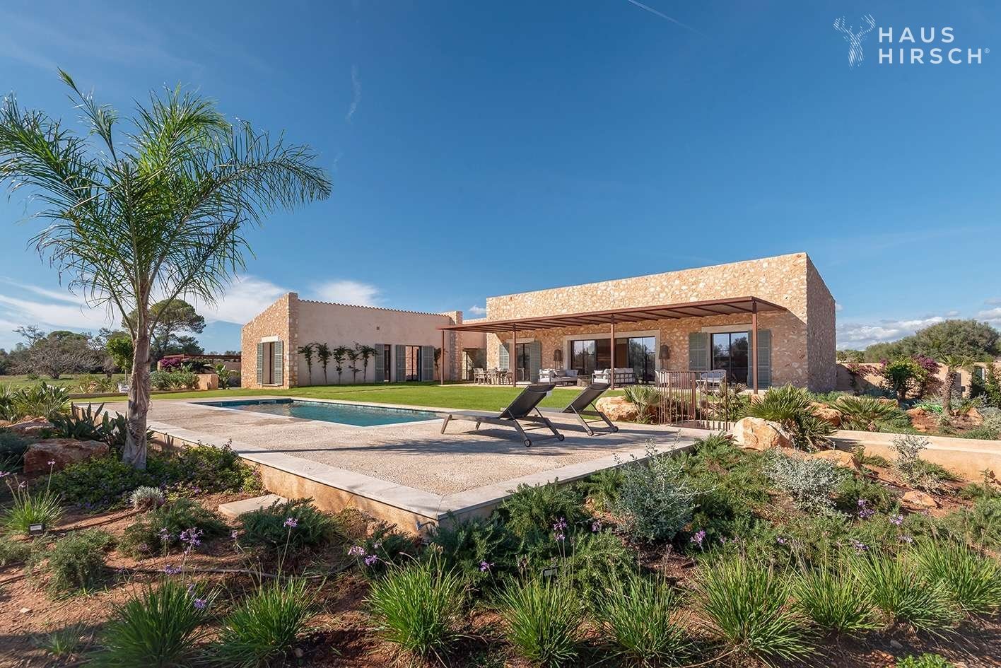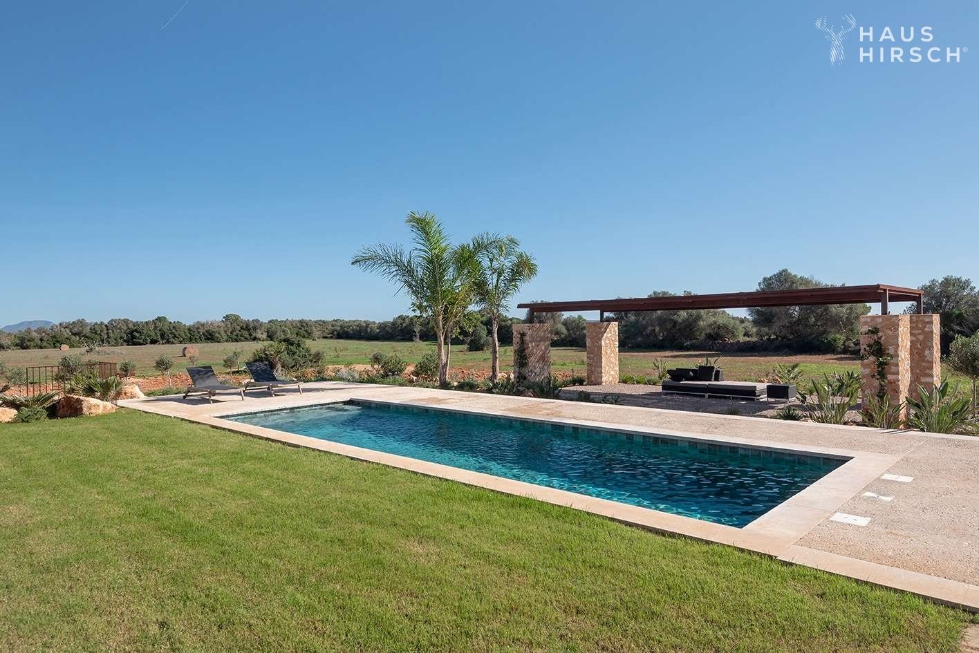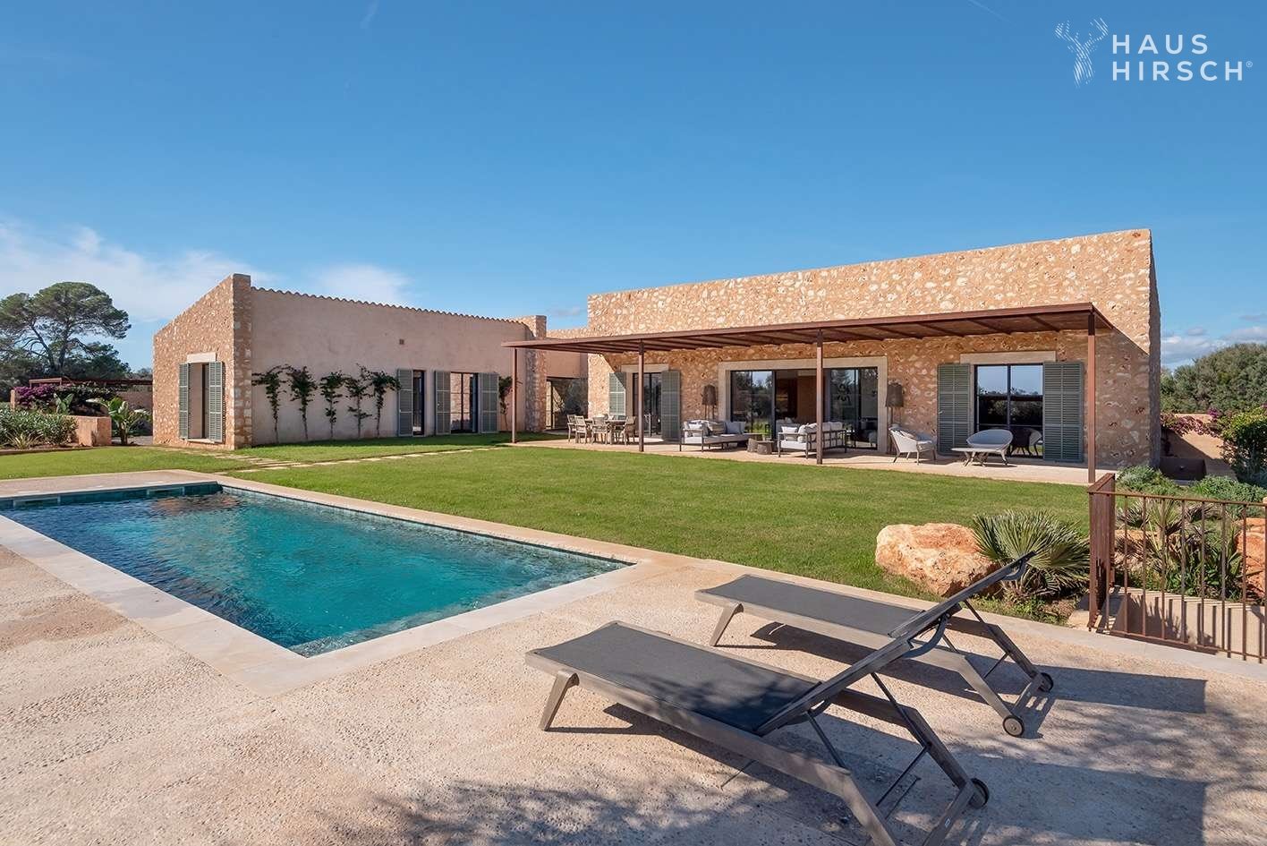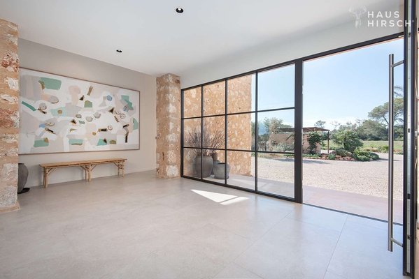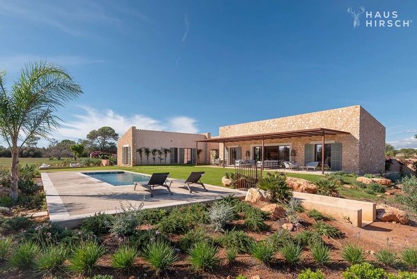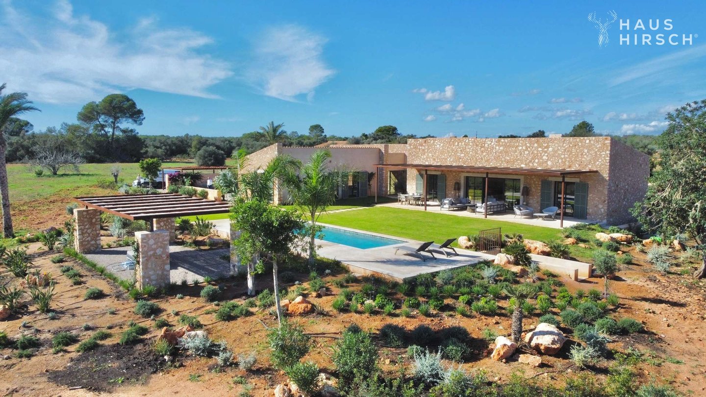 In einer ruhigen, naturgeprägten Lage nahe des geschützten Naturparks Es Trenc präsentiert sich diese stilvolle Neubaufinca auf einem weitläufigen Grundstück von 49.000 m². Das Anwesen wurde mit viel Liebe zum Detail entworfen und verbindet klare