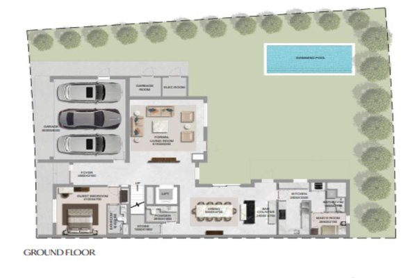 Wenn Sie die Villa mit sechs Schlafzimmern im Sobha Sanctuary in Dubailand betreten, werden Sie von der Schönheit und Gelassenheit der auf Wellness ausgerichteten Wohnanlage mit geringer Bevölkerungsdichte begrüßt. Der 800.000 Quadratmeter große