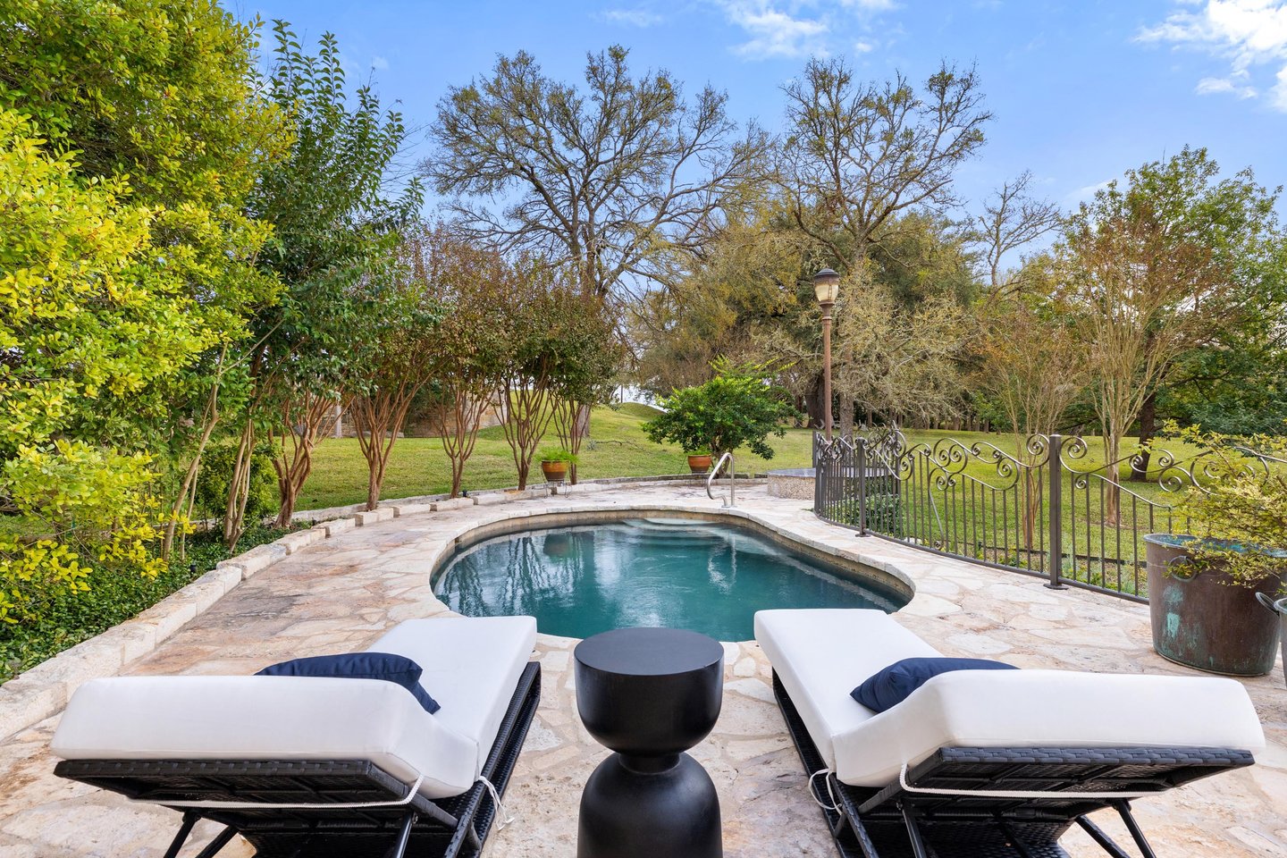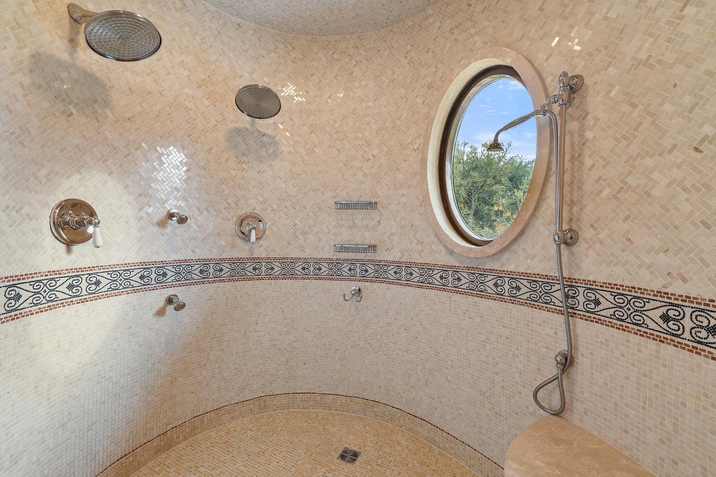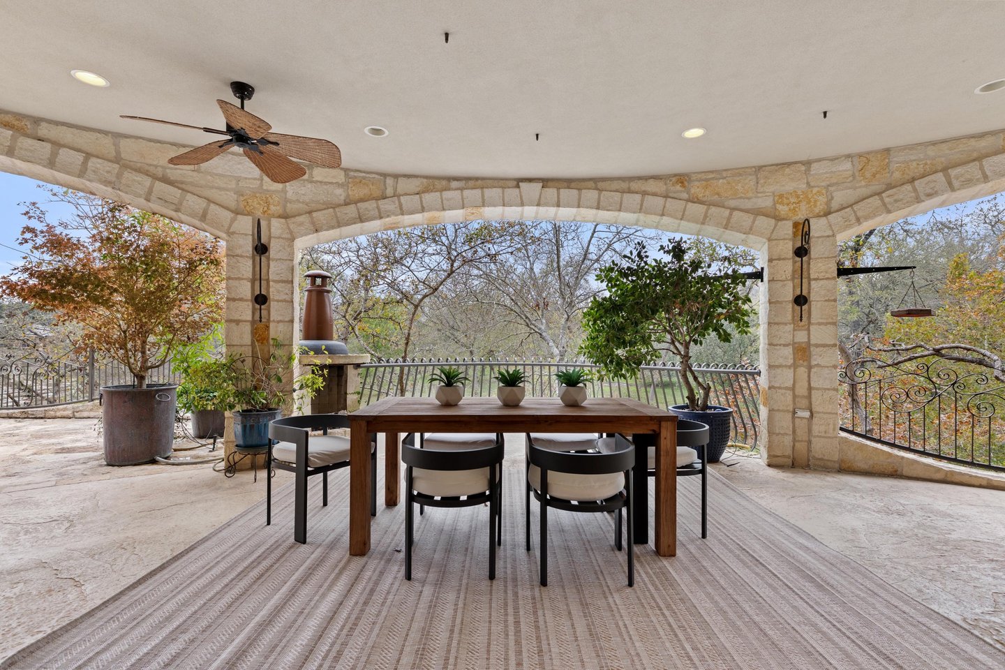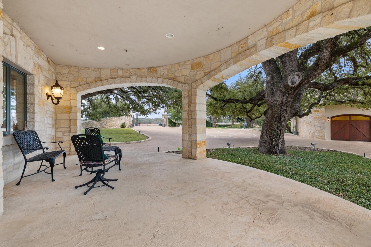 Eine außergewöhnliche Vermächtnismöglichkeit erwartet Oxbow Overlook, ein großartiges architektonisches Meisterwerk, das hoch über dem Salado Creek auf dreizehn unberührten Hektar sorgfältig gepflegter texanischer Landschaft thront. Dieses unvergleichliche Anwesen fängt das Wesen des kultivierten Hill Country-Lebens mit seinem dramatischen schmiedeeisernen Eingangstor, dem atemberaubenden Innenhof und den reifen Eichen ein, die eine majestätische Atmosphäre schaffen. Eine markante 24 Fuß hohe Eingangswand aus Eisen und Glas enthüllt eine prächtige Eingangshalle, die von einer 31 Fuß hohen Kupferkuppeldecke gekrönt wird, die über einer weitläufigen, viertelgesägten Eichentreppe mit Kupferakzenten schwebt. Sieben Kamine, darunter ein Außenelement, ergänzen die natürliche Kalksteinkonstruktion durchgehend. Bachwände, Terrassen und Außenwohnräume entsprechen der natürlichen Krümmung der Klippe, bieten spektakuläre Ausblicke über das Grundstück und zeigen außergewöhnliche Handwerkskunst mit durchdachten Annehmlichkeiten an jeder Ecke.