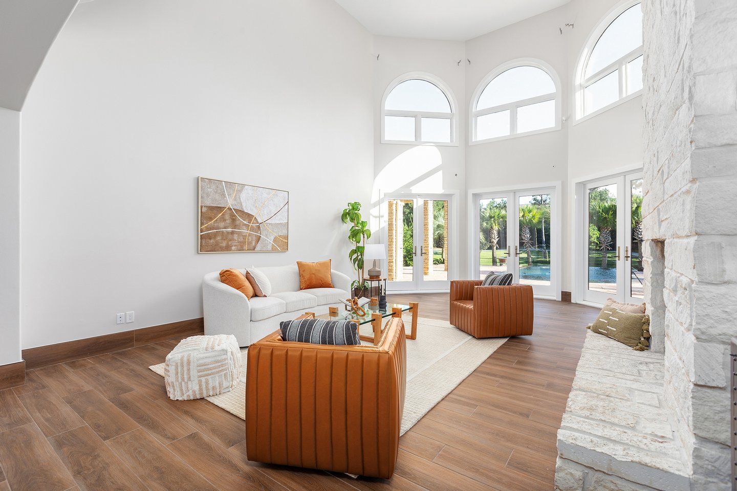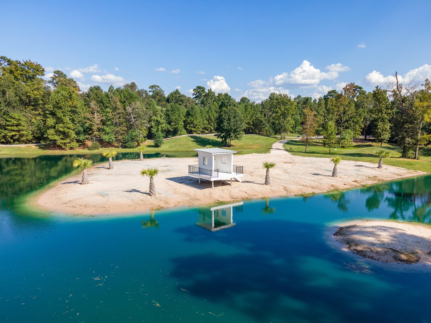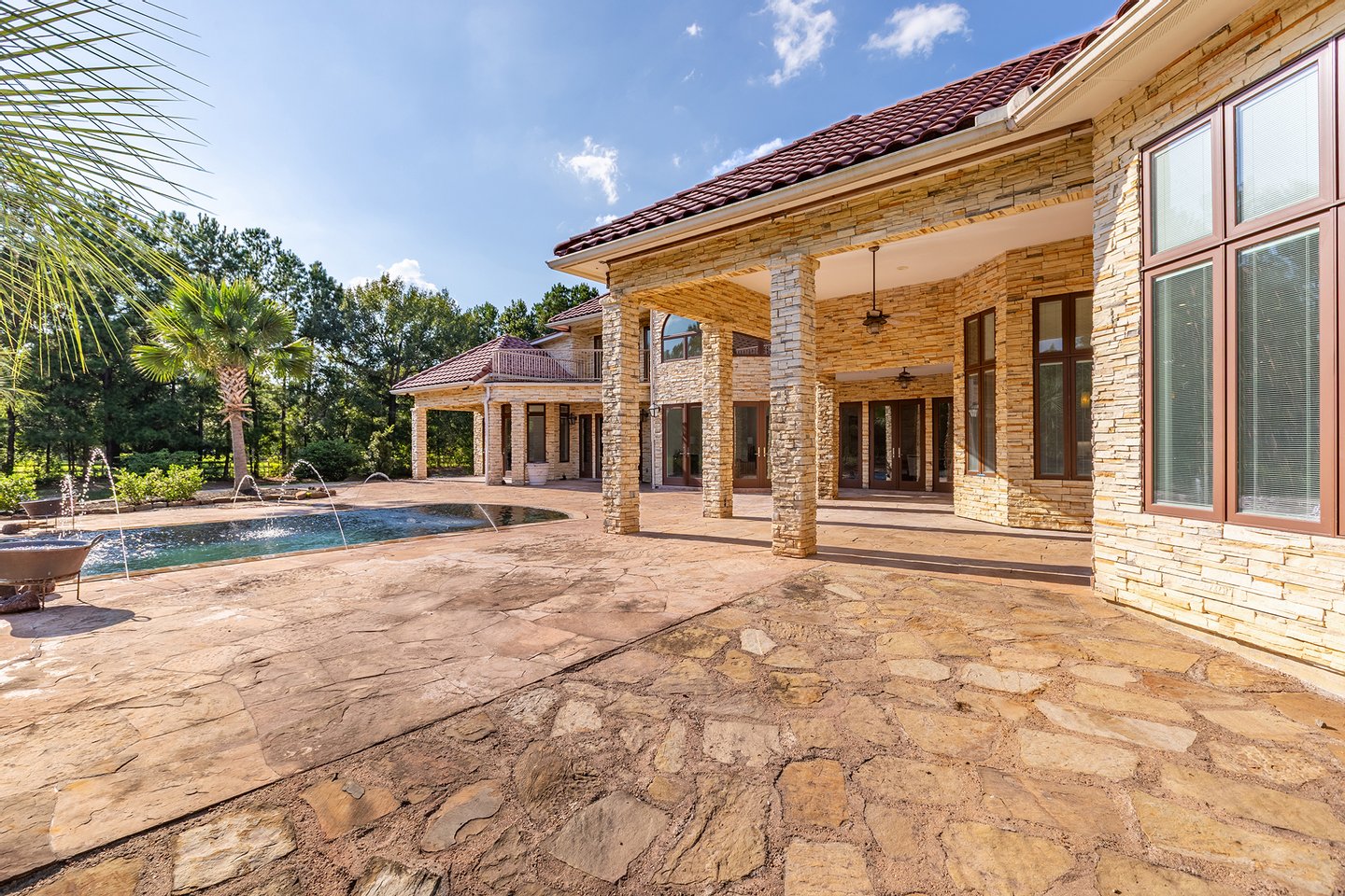An exceptional private estate opportunity presents itself at this magnificent nearly eleven-acre sanctuary featuring a distinctive moat-encircled residence. This extraordinary property epitomizes luxury living with its sparkling infinity-edge pool overlooking a substantial private pond with exclusive beach access, professional-grade outdoor kitchen, and regulation basketball court. Recently refreshed with neutral contemporary finishes throughout the generously proportioned residence, the estate offers seamless indoor-outdoor entertaining spaces complemented by extensive parking and a substantial workshop facility. Agricultural zoning permits equestrian pursuits with one horse or cow allowed per acre. Positioned just moments from The Woodlands' world-class amenities, this distinctive retreat combines unprecedented privacy with development flexibility, presenting an unparalleled opportunity to create a legacy family compound.